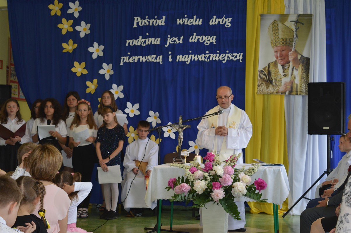 „Pośród wielu dróg rodzina jest drogą pierwszą i najważniejszą”, pod taki hasłem w dniu 10 czerwca 2022r. w Publicznej Szkole Podstawowej im. Jana Pawła II w Stojeszynie Pierwszym odbył się kolejny Dzień Rodziny. Było to już 12 takie spotkanie od pamiętnej daty nadania szkole imienia św. Jana Pawła II.