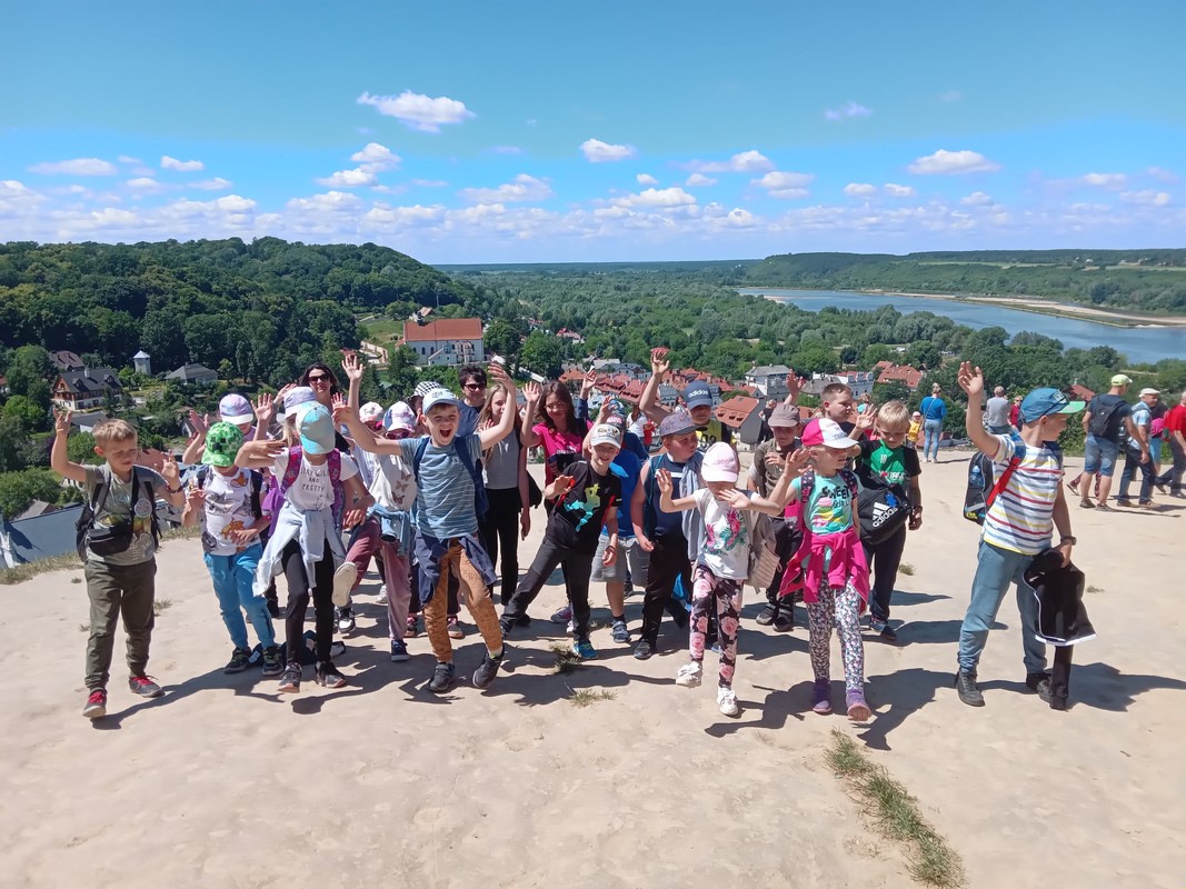Niewątpliwie największym wyzwaniem dla naszych dzieciaków było zwiedzanie Zespołu Zamkowego wraz z jego dziedzińcem, tarasem widokowym oraz wieżą strażniczą. Po czym już zostało wejście na Górę Trzech Krzyży i wysłuchanie opowieści związanej z tym miejscem. To tutaj podziwialiśmy urokliwą panoramę miasta.