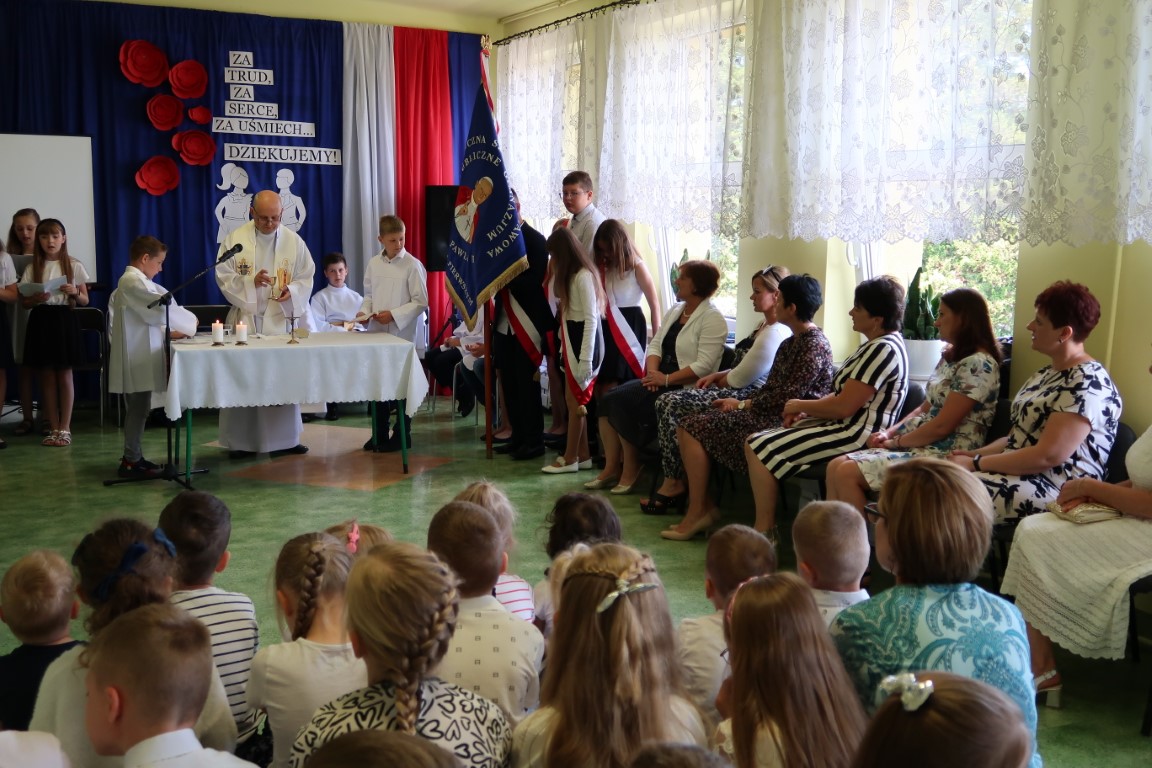 W piątek, 24 czerwca 2022 roku w naszej szkole odbyła się uroczystość zakończenia roku szkolnego 2021/2022, która miała szczególnie wzruszający charakter. Wiązała się bowiem z pożegnaniem uczniów klasy ósmej, którzy kończyli swoją edukację na poziomie podstawowym. Uroczystość rozpoczęła się od mszy świętej, na którą przybyli uczniowie z rodzicami, dyrektor, nauczyciele oraz pracownicy obsługi szkoły. Część oficjalną rozpoczęła Pani Dyrektor witając wszystkich zebranych: uczniów, rodziców, nauczycieli, pracowników obsługi i zaproszonych gości: Burmistrza Modliborzyc – Pana Witolda Kowalika, Sekretarz Gminy – Panią Marzenę Dolecką- Jocek oraz Księdza Proboszcza Parafii Brzeziny - Krzysztofa Woźniaka. Po powitaniu wszyscy odśpiewali hymn państwowy, a uczniowie klasy ósmej złożyli ślubowanie. Następnie dyrektor szkoły – p. Małgorzata Wisińska i wychowawczyni klasy VIII – p. Dorota Rząd wręczyły absolwentom świadectwa ukończenia szkoły podstawowej, listy gratulacyjne rodzicom wyróżnionych uczniów oraz podziękowania dla rodziców za pracę na rzecz szkoły. Dyrektor szkoły podziękowała wychowawczyni klasy ósmej i nauczycielom uczącym w tej klasie za trud włożony w edukację i pracę opiekuńczo – wychowawczą. Wychowawczyni klasy ósmej podziękowała nauczycielom za trud włożony w nauczanie i duże zaangażowanie w przygotowanie wychowanków do egzaminu ósmoklasisty, rodzicom za dobrą współpracę i przygotowanie wielu imprez klasowych oraz uczniom za podejmowanie wielu inicjatyw dla dobra klasy, lojalność i odpowiedzialność.