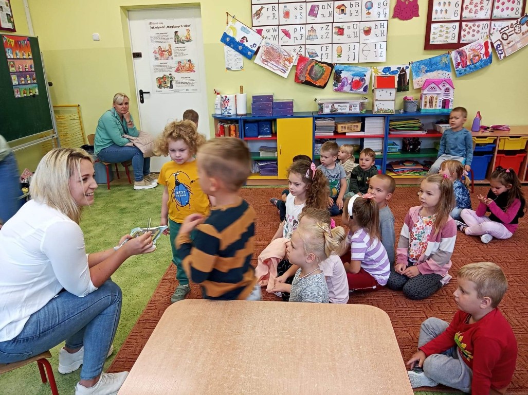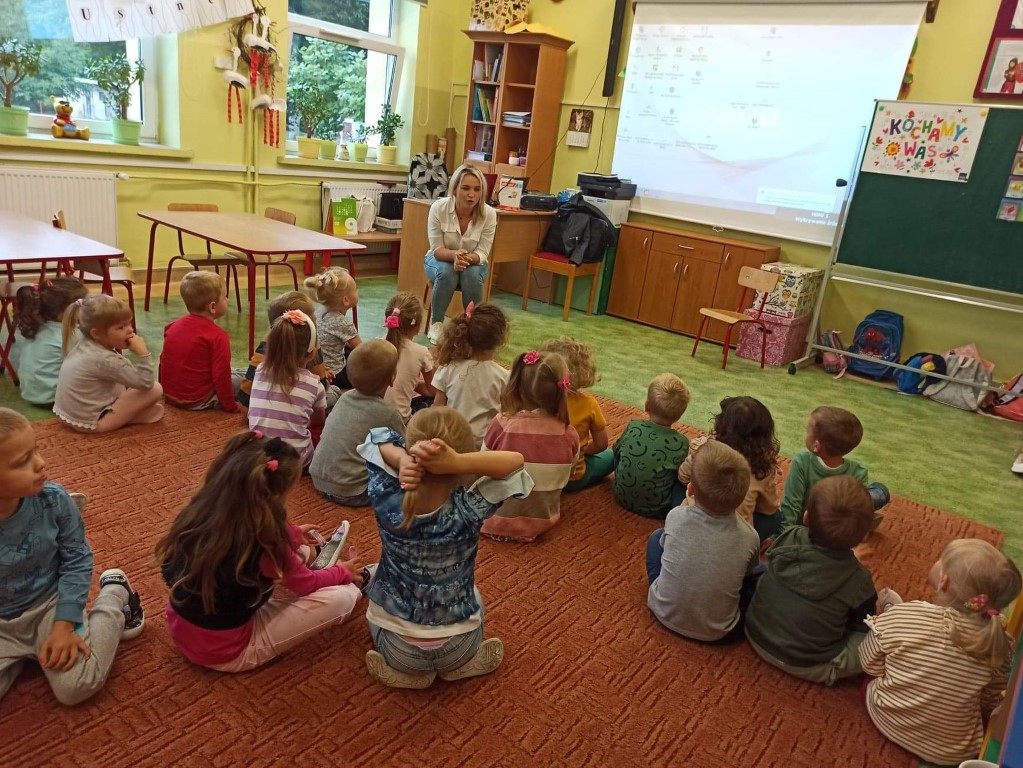 12 września w naszym przedszkolu obchodziliśmy światowy Dzień Zdrowia Jamy Ustnej. Tematyki o zdrowych zębach nie przedstawi dzieciom nikt lepiej, jak sam dentysta. Z tej okazji nasze przedszkole odwiedziła Pani Stomatolog pracująca w Ośrodku Zdrowia w Potoczku. Przeprowadziła zajęcia z przedszkolakami, dotyczące dbania o higienę jamy ustnej. Dzieci dowiedziały się, w jaki sposób dbać o zęby i co jeść, by zachować promienny uśmiech. Ogromnym zainteresowaniem cieszyły się narzędzia dentystyczne, które przyniosła Pani doktor. Przedszkolaki mogły je obejrzeć i dowiedzieć się do czego służą. Następnie dzieci obejrzały projekcję filmu edukacyjnego dzięki któremu dowiedziały się, co to jest próchnica i dlaczego psują się zęby oraz jak prawidłowo należy je czyścić. Pani stomatolog zachęcała jednocześnie dzieci do wizyt w gabinecie stomatologicznym, pomagając im tym samym w przełamaniu lęku przed kontaktem z dentystą.
