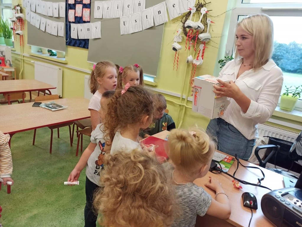 Na zakończenie spotkania dzieci otrzymały pasty do zębów, kalendarz szczotkowania oraz kolorowanki. Mamy nadzieję, że to spotkanie wpłynie na kształtowanie postawy dzieci wobec własnego zdrowia i nawyków higienicznych a także przełamie lęk przed wizytą w gabinecie.