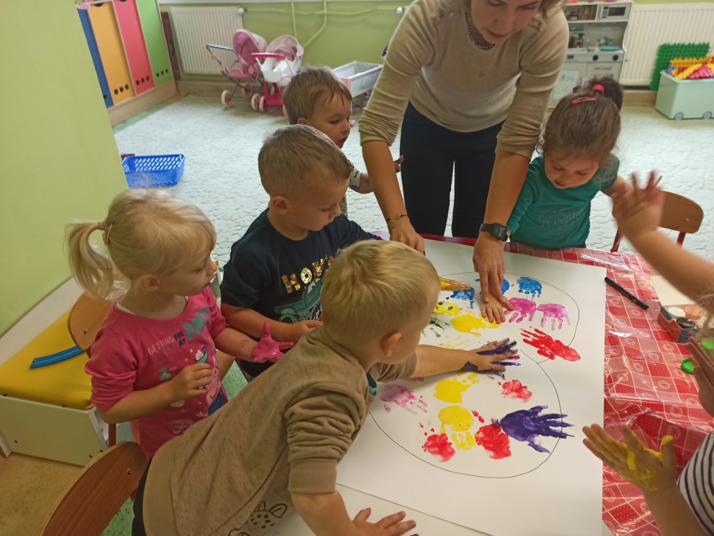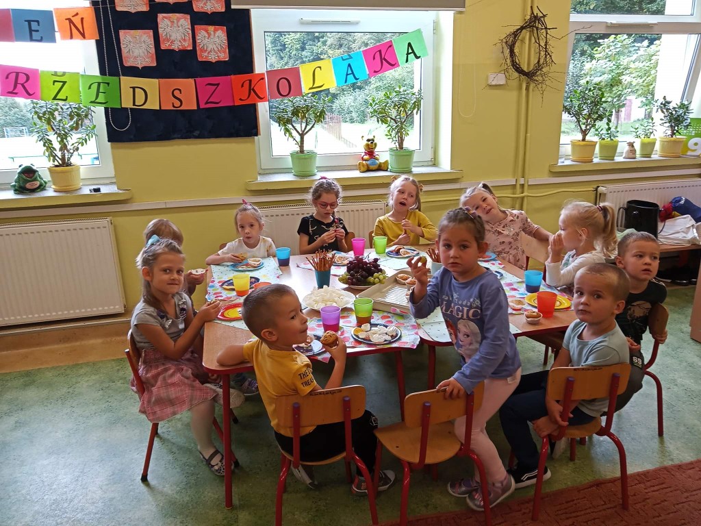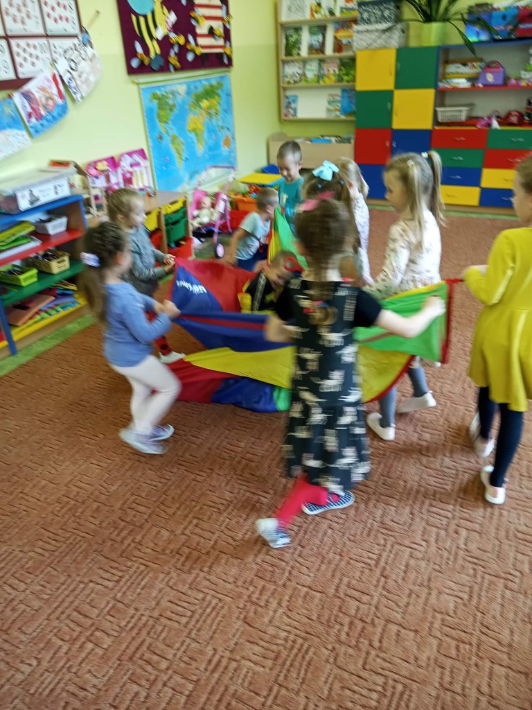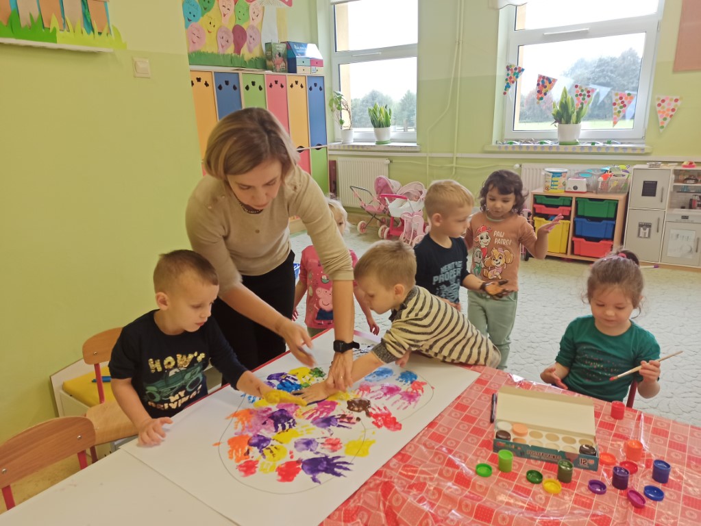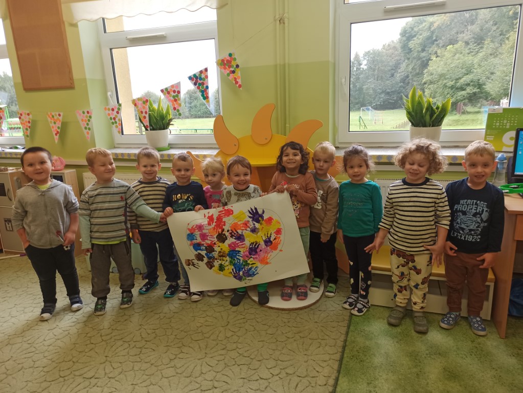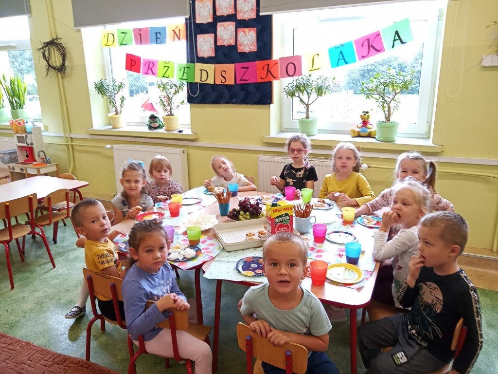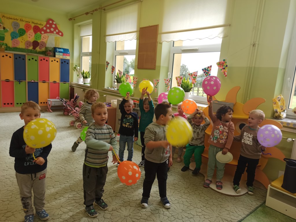Również w naszym przedszkolu tego dnia było bardzo wesoło. Zajęcia rozpoczęły się od małego quizu dotyczącego przedszkola oraz grupy. Dzieci uczestniczyły również w zabawach ruchowych i muzycznych. Grupa ,,Skrzaty” wspólnie wykonała pracę plastyczną, która świetnie zintegrowała wszystkie dzieci. Dodatkowo każde dziecko otrzymało medal - Super Przedszkolaka. Dzień był również wyjątkowo atrakcyjny dla starszaków. Zabawy muzyczno - ruchowe z chustą animacyjną oraz tańce z balonami to świetna zabawa. Na koniec naszą salę zamieniliśmy w salę kinową, by przy popcornie obejrzeć bajkę. Miłym akcentem tego dnia był słodki poczęstunek, przygotowany przez kochanych rodziców.