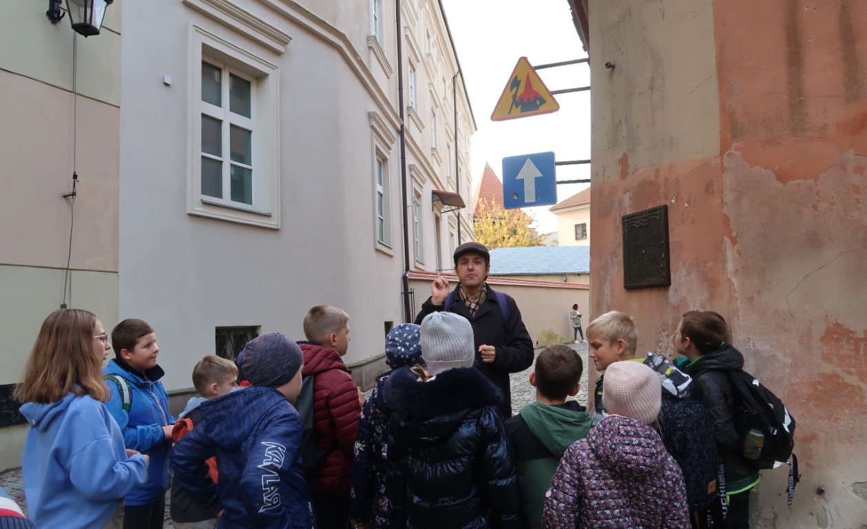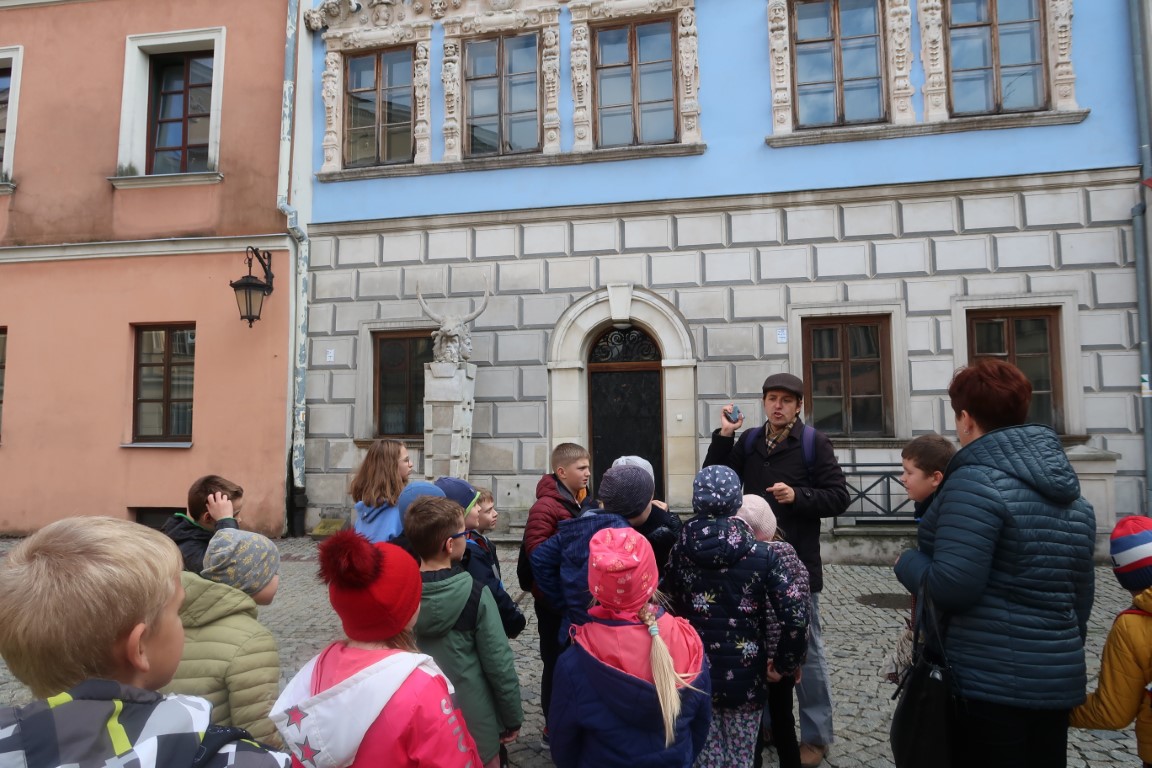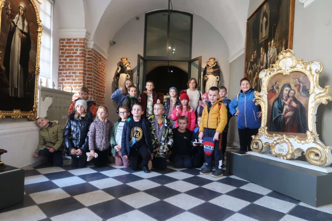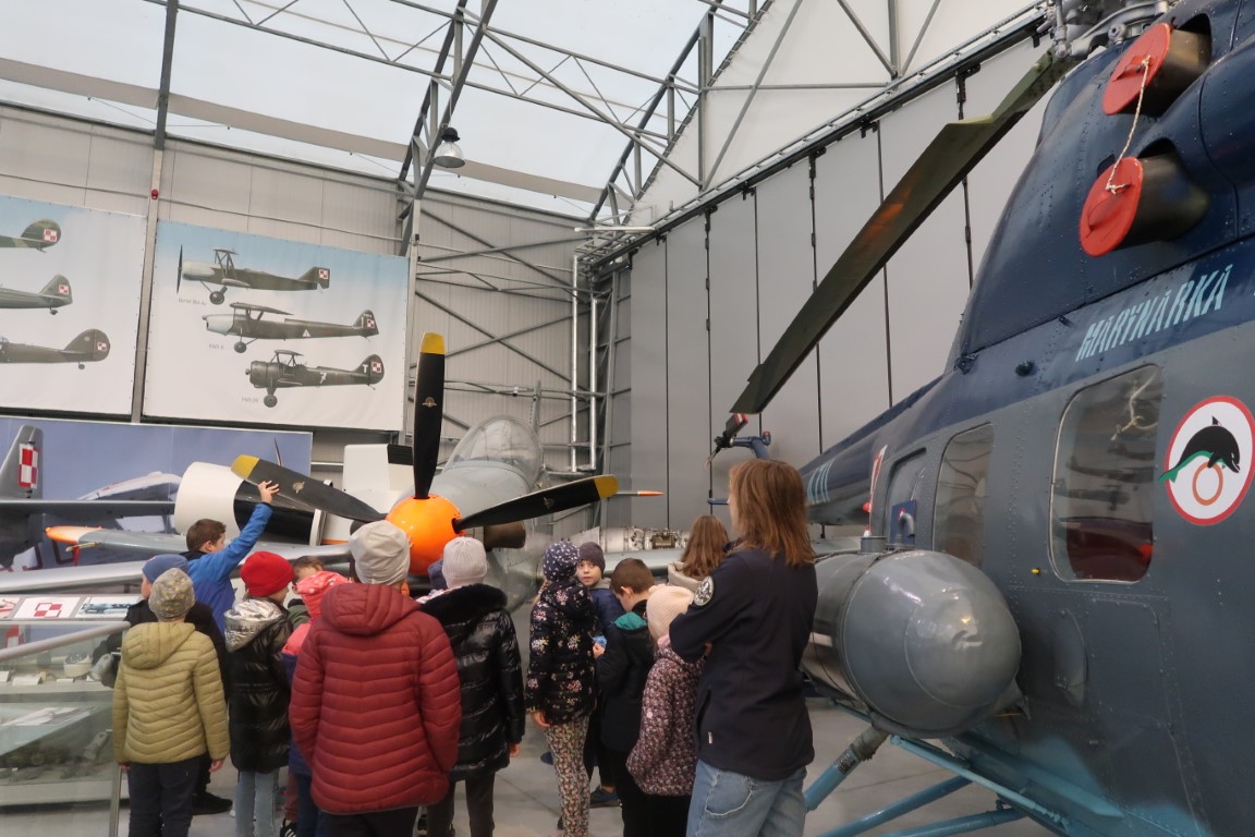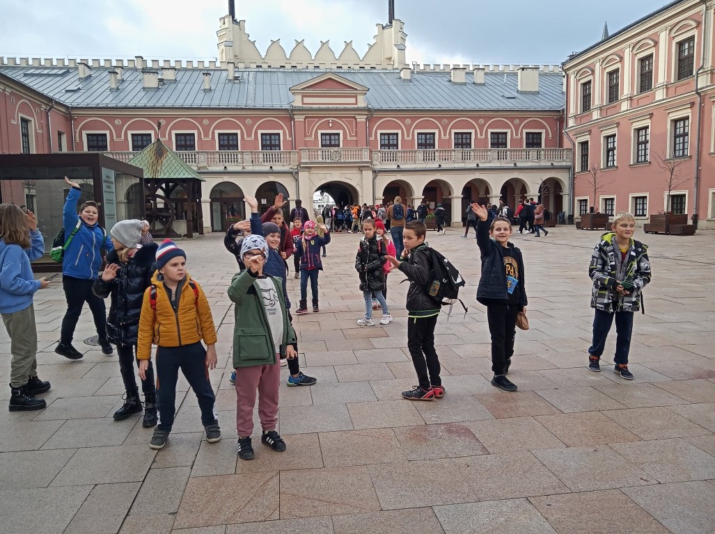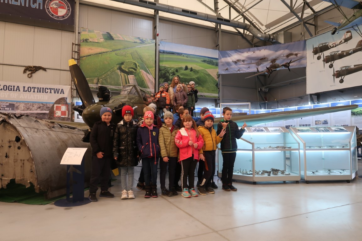 Pierwszym punktem wycieczki było zwiedzenie Muzeum Sił Powietrznych w Dęblinie, gdzie uczniowie mieli okazję poznać historią polskiego lotnictwa oraz obejrzeć z bliska wojskowe samoloty i śmigłowce. Kolejnym etapem naszej wycieczki było miasto Lublin. Spacerując ulicami Starego Miasta dzieci poznały historię Lublina, wysłuchały lubelskich legend i zobaczyły jego zabytkowe kamienice. Wielką radość sprawiło dzieciom poszukiwanie lubelskich koziołków. Będąc na Placu Litewskim uczniowie mieli okazje przywitać się z mieszkańcami Wilna, dzięki portalowi Lublin-Wilno. Po wejściu na Wzgórze Zamkowe mogliśmy podziwiać panoramę miasta. W Lublinie zwiedziliśmy także Bazylikę i skarbiec Dominikanów, gdzie zobaczyliśmy kolekcję zabytkowych szat liturgicznych i wyrobów złotniczych. Ostatnim punktem naszej wycieczki było kino Cinema City, w którym obejrzeliśmy film pt. ,,Kopciuszek i kamień życia”.