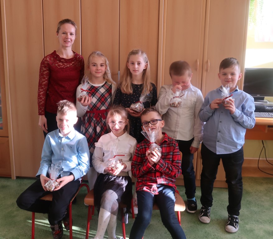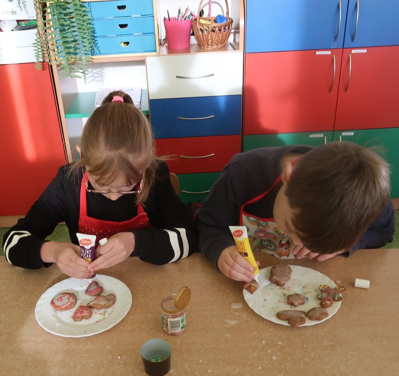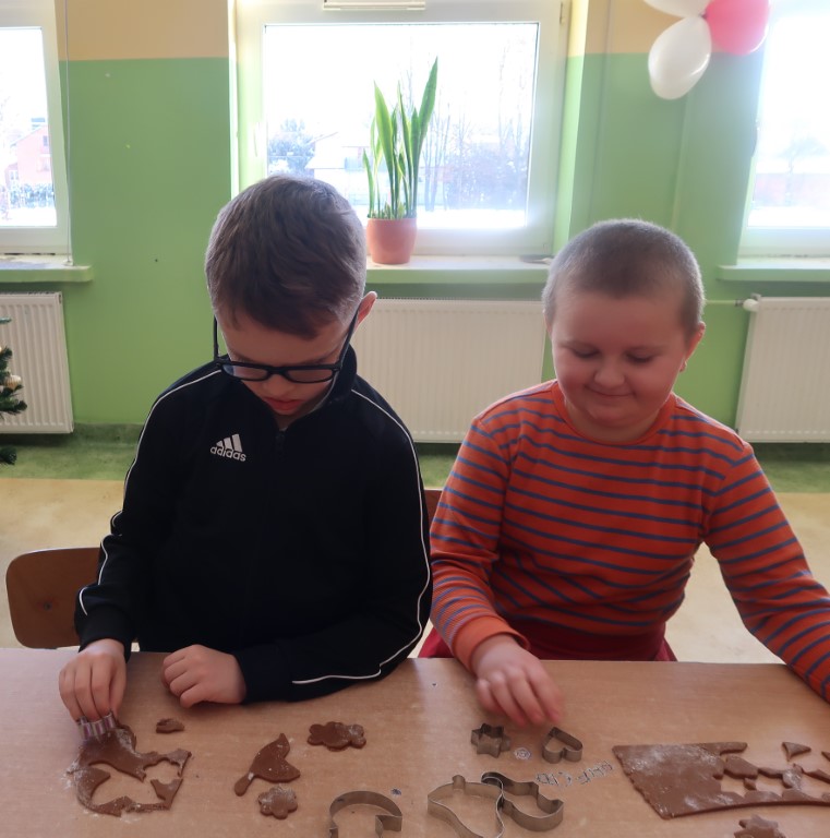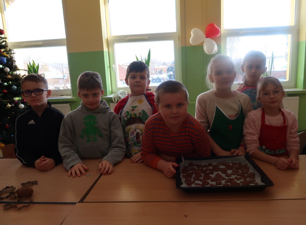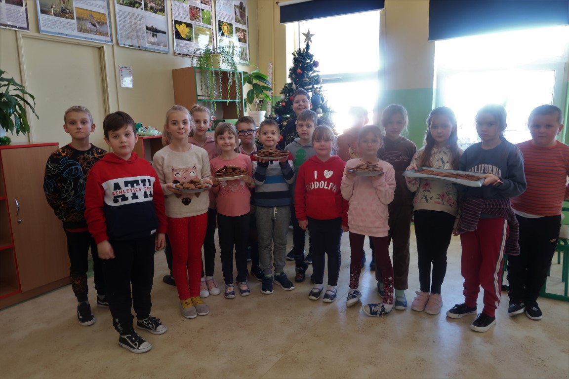 19 grudnia zgodnie z przedświąteczną tradycją uczniowie z klas I-III wraz z wychowawcami, upiekli pyszne pierniczki. Uczniowie mieszali składniki, wygniatali i wałkowali ciasto według przygotowanego wcześniej przepisu. Wszystkim podobało się wykrawanie świątecznych kształtów – choinek, gwiazdek, serduszek, przy pomocy foremek. Podczas pieczenia pierników w całej szkole unosił się wspaniały zapach, który wprawił wszystkich w świąteczny nastrój. Największą radość dzieciom sprawiło ozdabianie pierników za pomocą kolorowych pisaków i barwnych posypek. Zabawa była doskonała, a pierniczki wyszły przepięknie.
