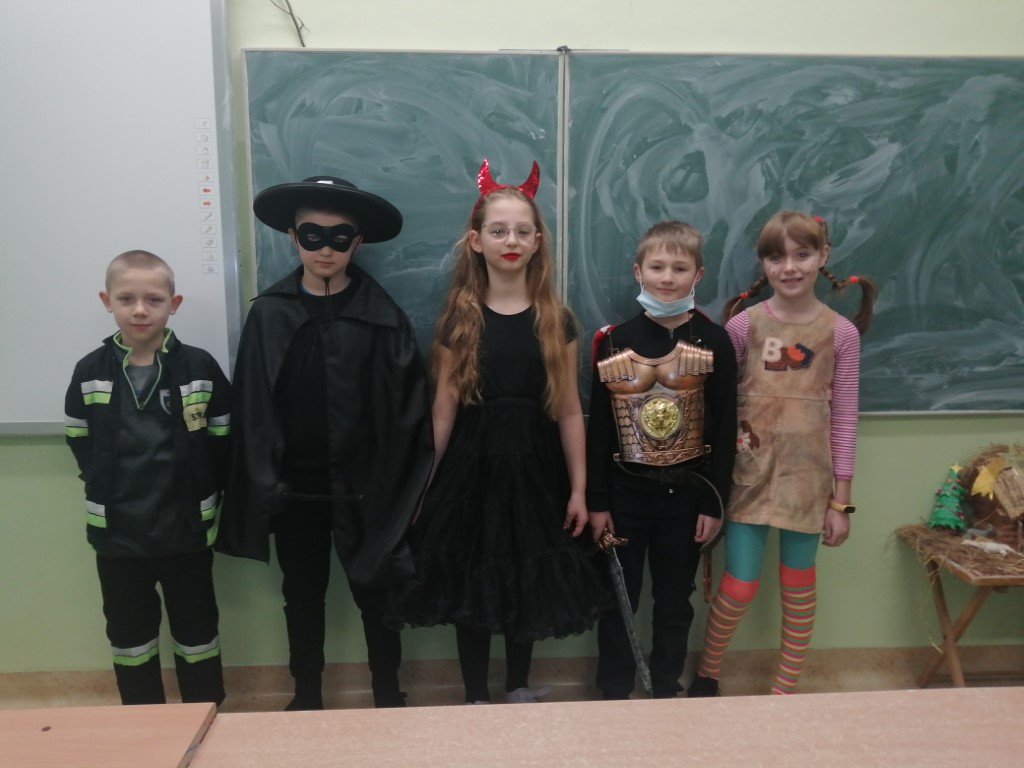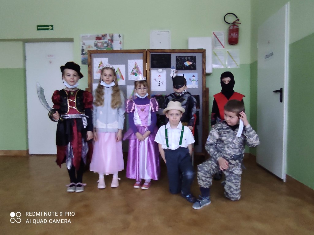 W czwartek 27 stycznia 2022 r. obchodziliśmy w naszej szkole Dzień Karnawałowy. W tym dniu uczniowie mogli zaprezentować się w różnych przebraniach i maskach oraz zrobić oryginalne fryzury i makijaże. Nasi wychowankowie wcielili się w postacie z książek, bajek i filmów. Na szkolnym korytarzu pojawiły się księżniczki, czarownice, aniołki i diablice. Nie zabrakło też rycerzy, czarodziejów i żołnierzy. Na twarzach uczniów i nauczycieli gościł uśmiech. Wszystkim towarzyszył dobry nastrój. Samorząd Uczniowski dla wszystkich przebierańców ufundował lizaki.