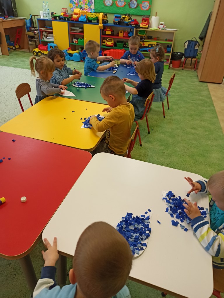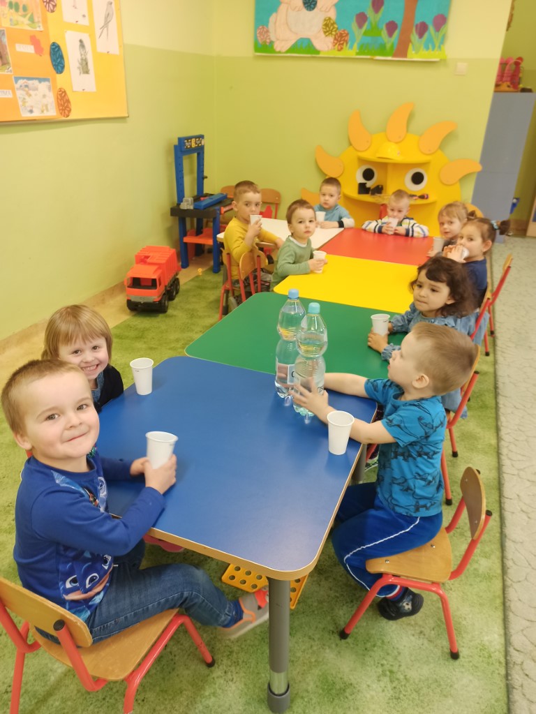 Przedszkolaki z grupy "Skrzatów" i "Pszczółek" wzięły udział w obchodach tego święta. W czasie zajęć dzieci poznały właściwości wody, dowiedziały się jakie znacznie ma woda dla ludzi i świata przyrody oraz jak należy ją oszczędzać. W krótkim filmie edukakacyjnym przedszkolaki zobaczyły, jak woda krąży w przyrodzie, a także jak czysta woda trafia do naszych domów. Dzieci mogły skosztować różnych rodzajów wody i podzielić się swoimi spostrzerzeniami. Odbyły się również wesołe zabawy ruchowe. Na zakończenie przedszkolaki z obu grup wykonały kropelki wody stosując różne techniki plastyczne.
