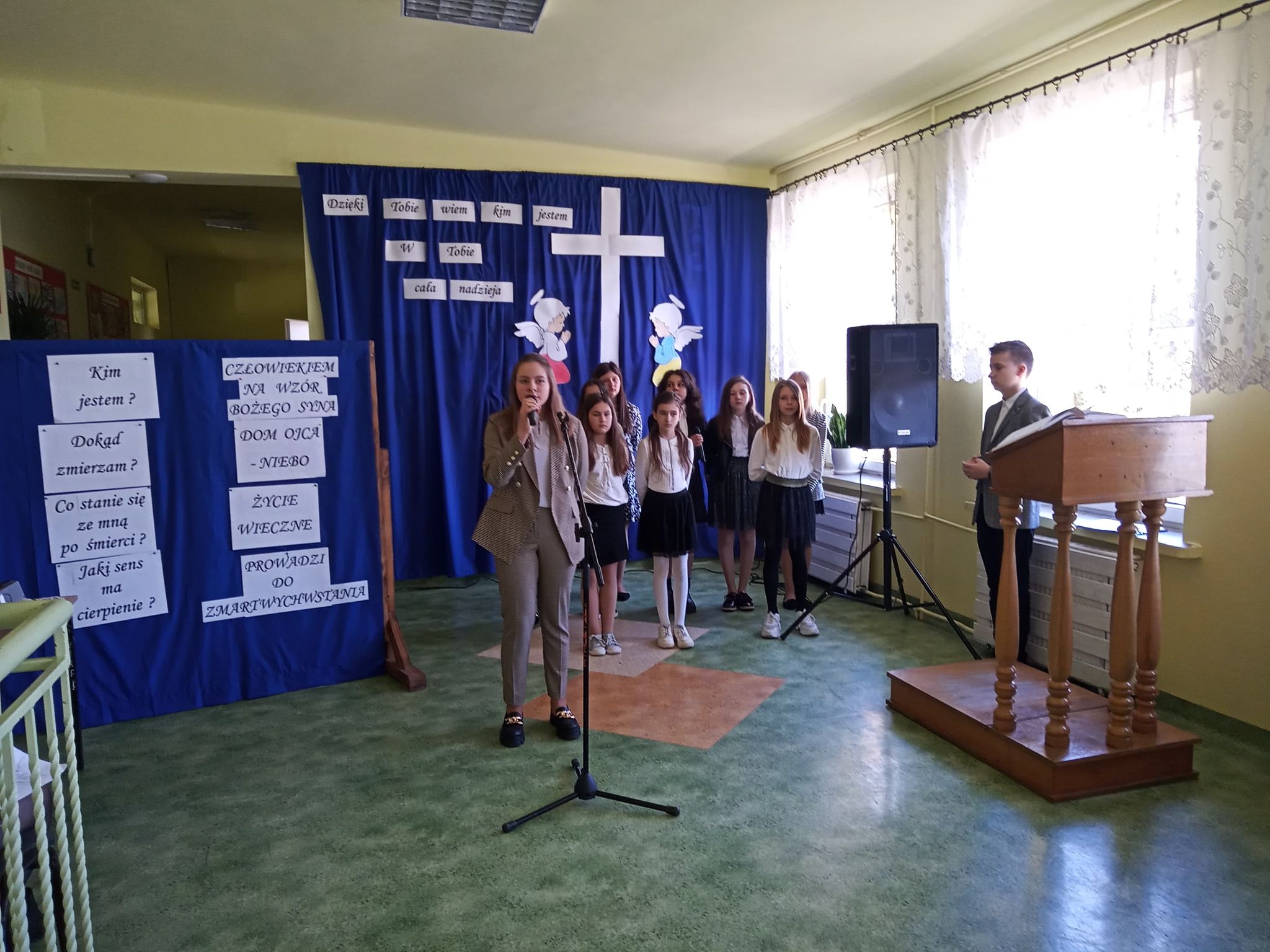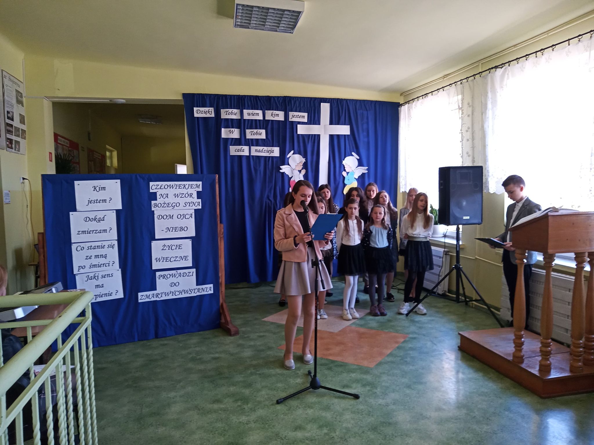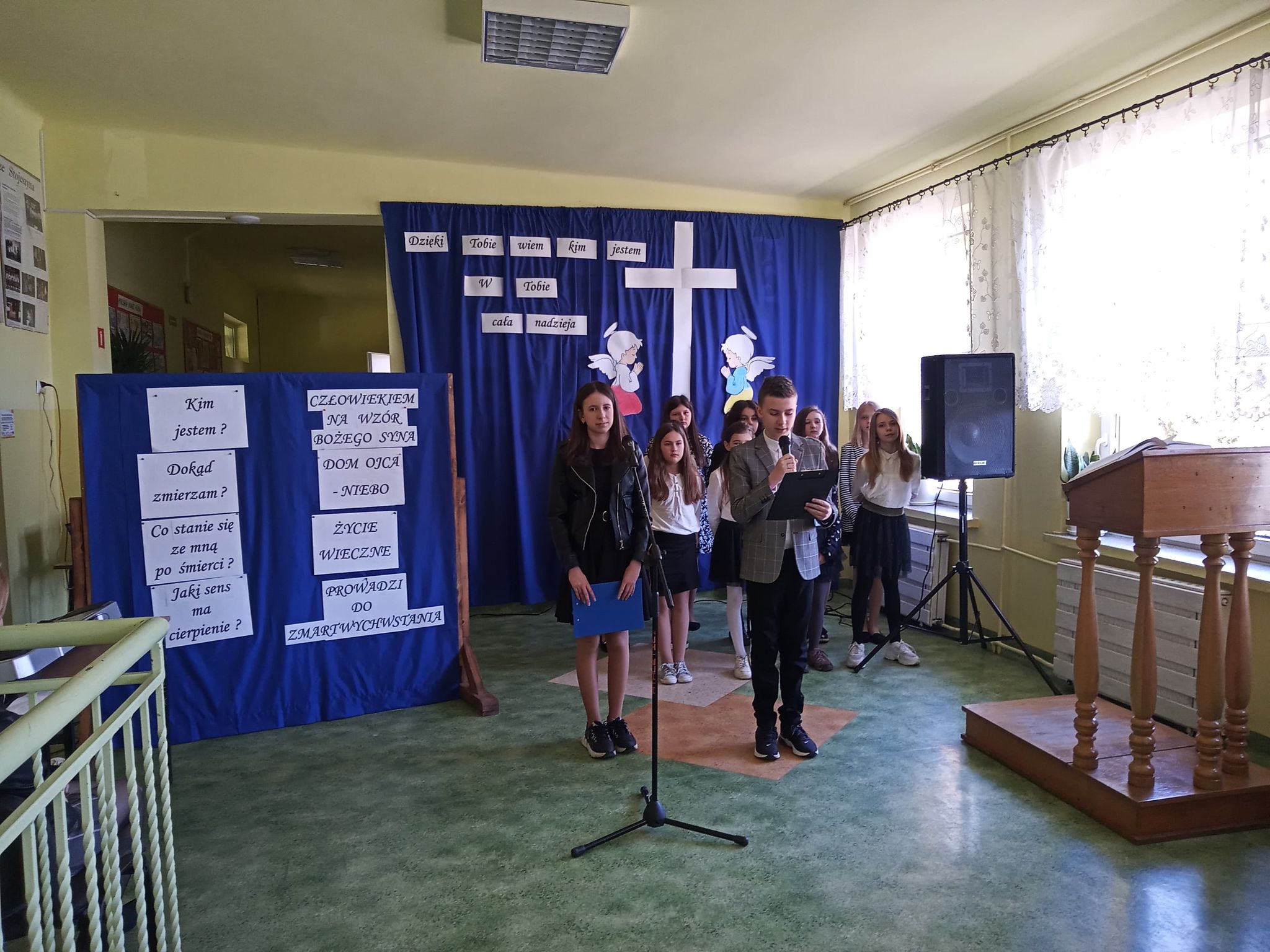 Cytat z pięknej piosenki „Do polityka”: „kto ty jesteś człowieku?” stanowił motyw przewodni akademii z okazji Świąt Wielkanocnych zaprezentowanej 13 kwietnia 2022 r . Montaż słowno – muzyczny przygotowany przez uczniów naszej szkoły pod kierunkiem p. J. Gajór, p. Ewy Boś i p. M. Piotrowskiej starał się pomóc w przygotowaniu do owocnego przeżycia tego największego dla chrześcijan święta. Liczne cytaty z Pisma Świętego, wiersze i pieśni miały za zadanie skłonić do refleksji nad męką i śmiercią Chrystusa, triumfem Zmartwychwstania i losem człowieka.