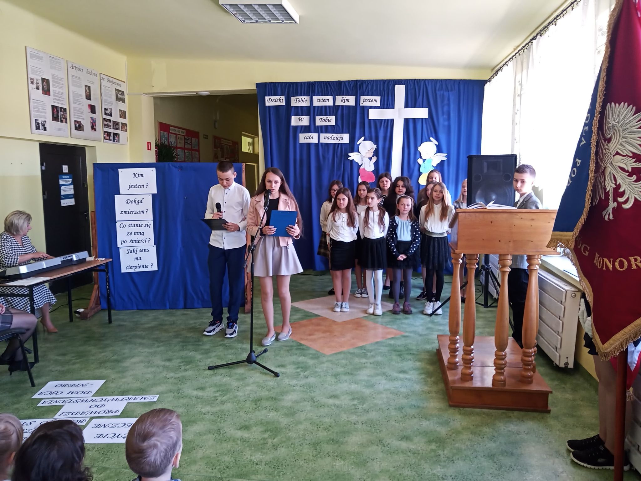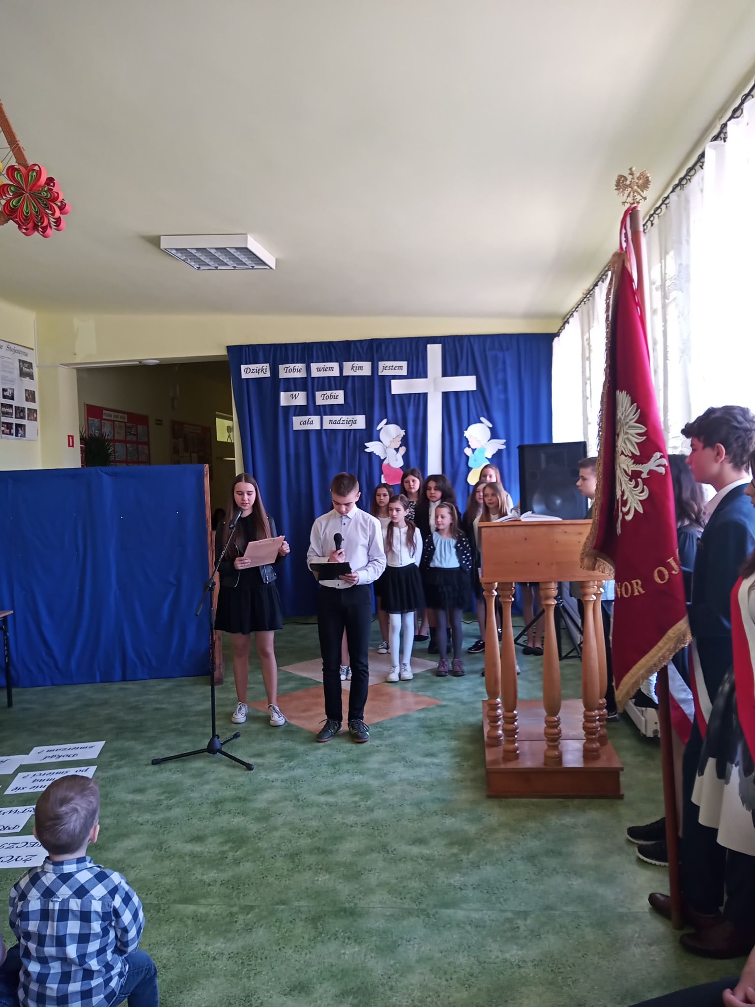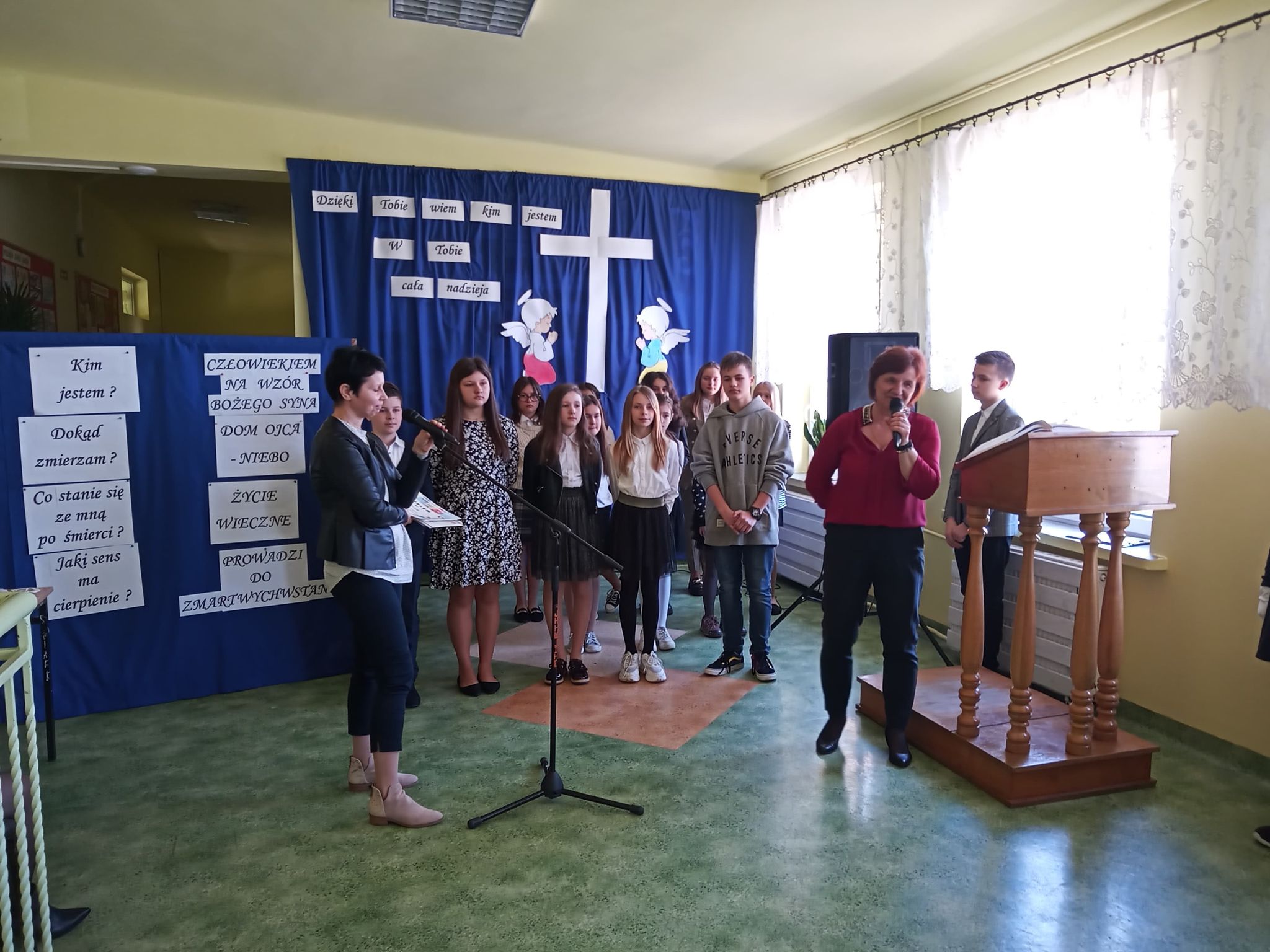 Cytat z pięknej piosenki „Do polityka”: „kto ty jesteś człowieku?” stanowił motyw przewodni akademii z okazji Świąt Wielkanocnych zaprezentowanej 13 kwietnia 2022 r . Montaż słowno – muzyczny przygotowany przez uczniów naszej szkoły pod kierunkiem p. J. Gajór, p. Ewy Boś i p. M. Piotrowskiej starał się pomóc w przygotowaniu do owocnego przeżycia tego największego dla chrześcijan święta. Liczne cytaty z Pisma Świętego, wiersze i pieśni miały za zadanie skłonić do refleksji nad męką i śmiercią Chrystusa, triumfem Zmartwychwstania i losem człowieka.