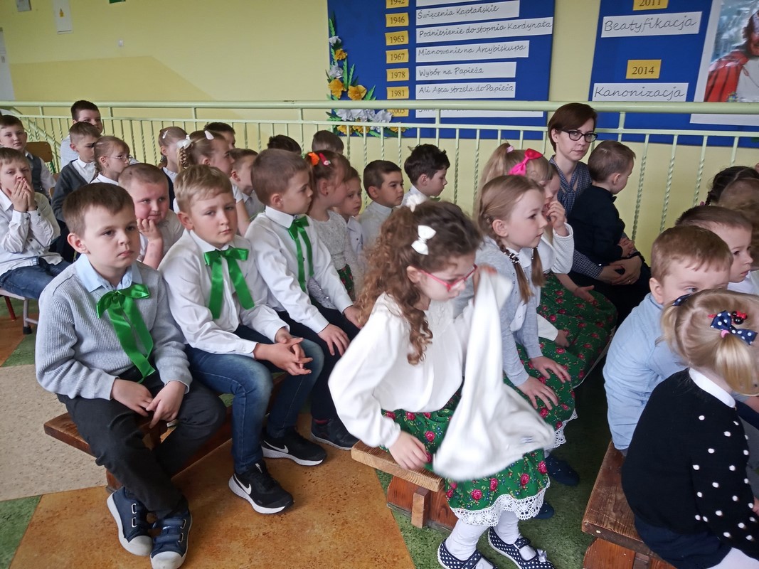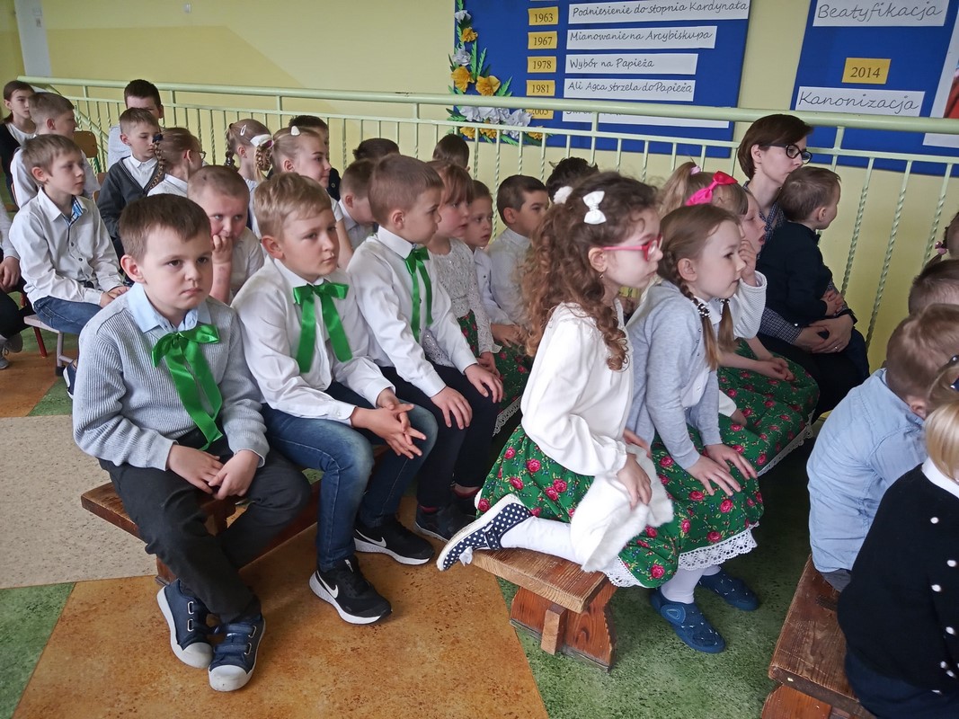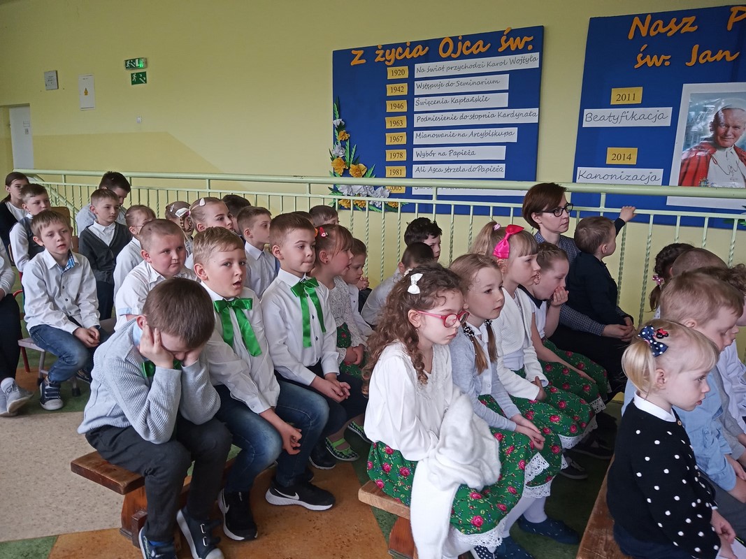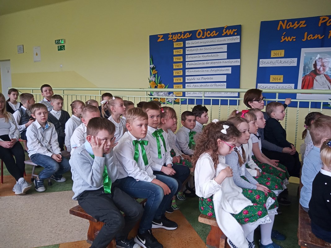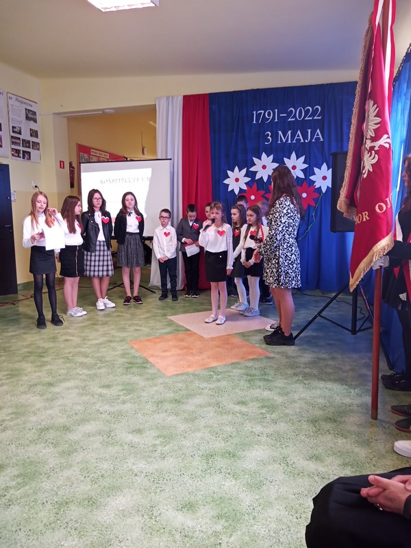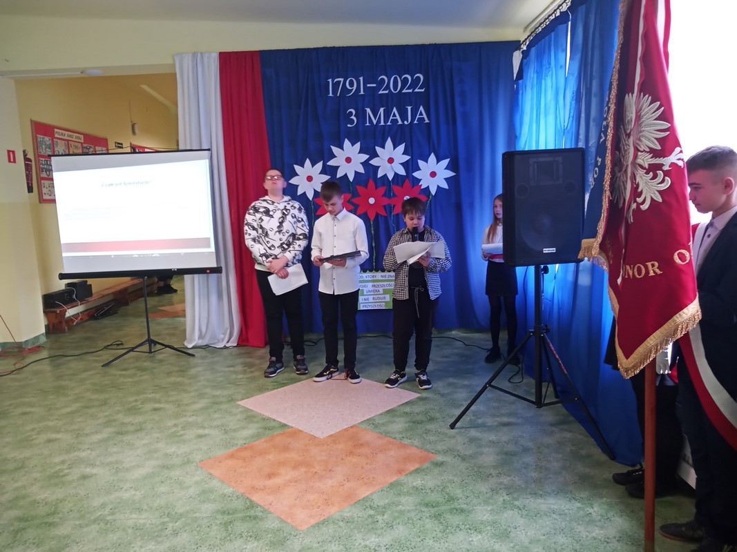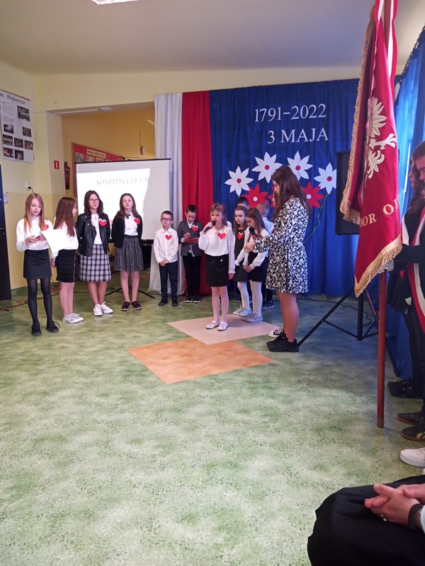 Inscenizację słowno - muzyczną z tej okazji zaprezentowali wspólnie uczniowie klasy II, IV i V. Nawiązywała ona do przeszłości, historii oraz okoliczności uchwalenia pierwszej w Europie, a drugiej na świecie konstytucji.