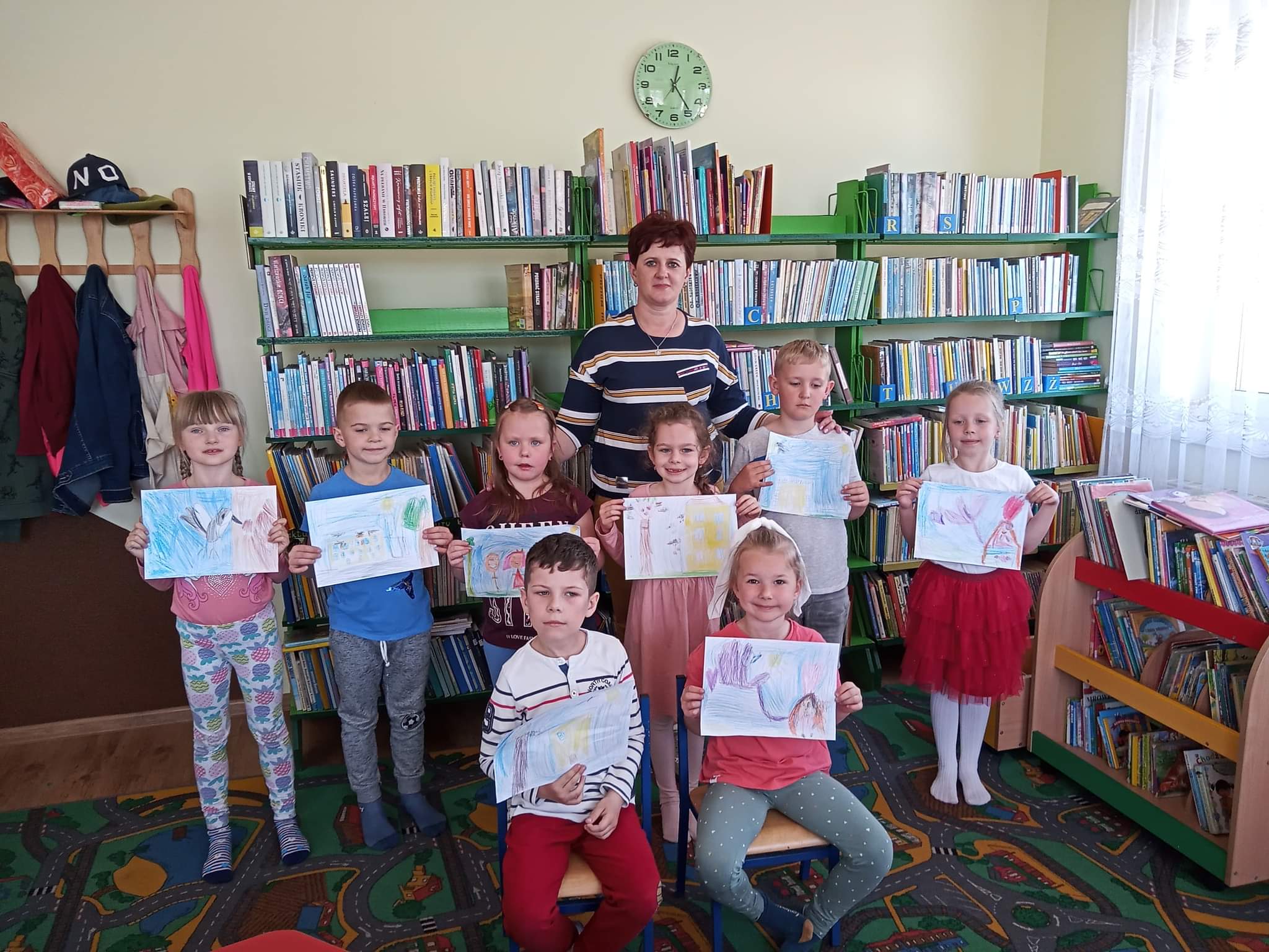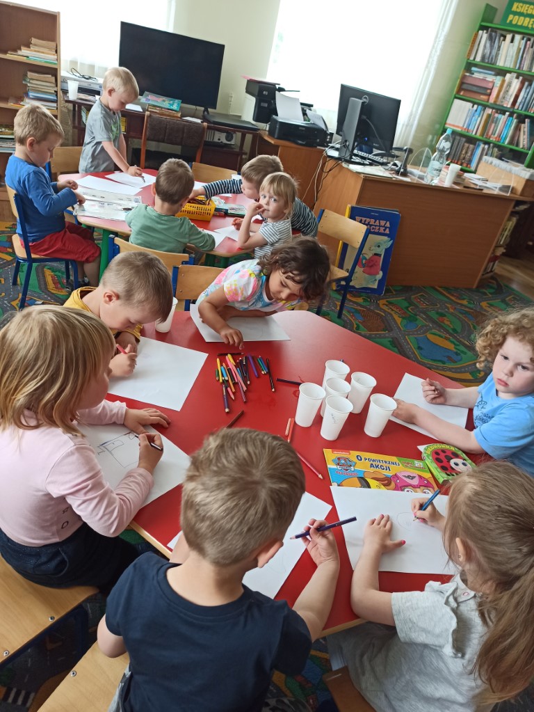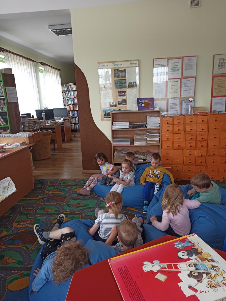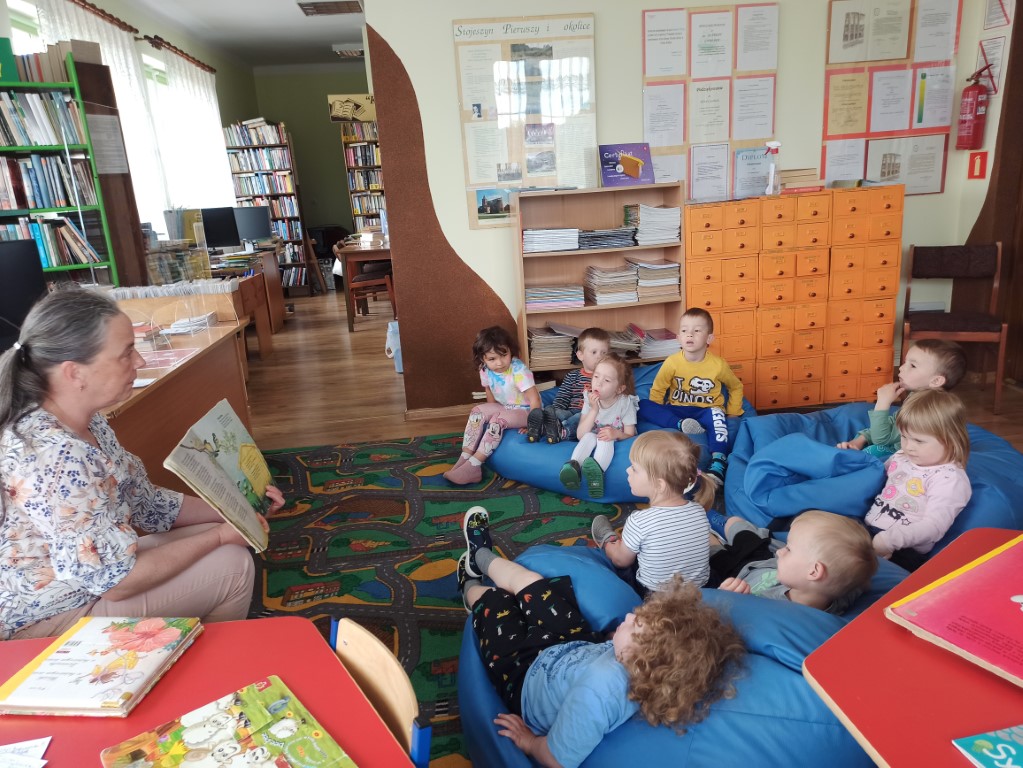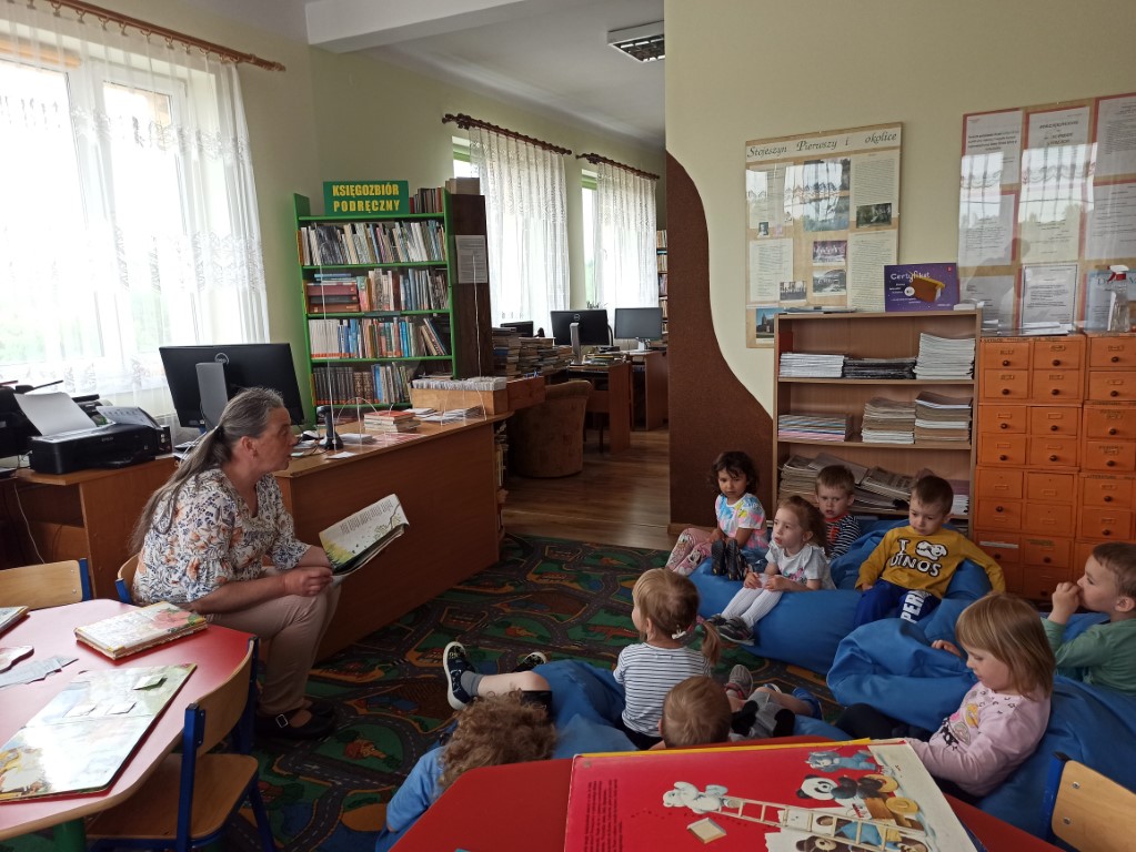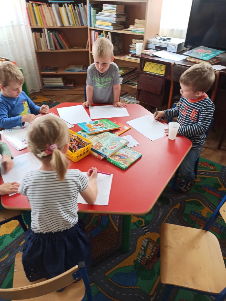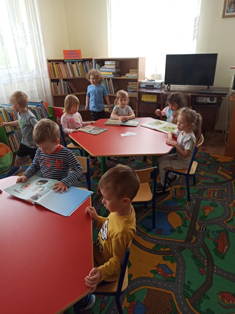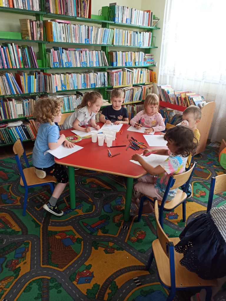 Dzieci  dowiedziały się również, jak zachować się w bibliotece, mogły przeglądać inne książki znajdujące się na półkach, poznać pracę Pani bibliotekarki oraz wykonać prace plastyczne, które zawisły na wystawie w bibliotece.