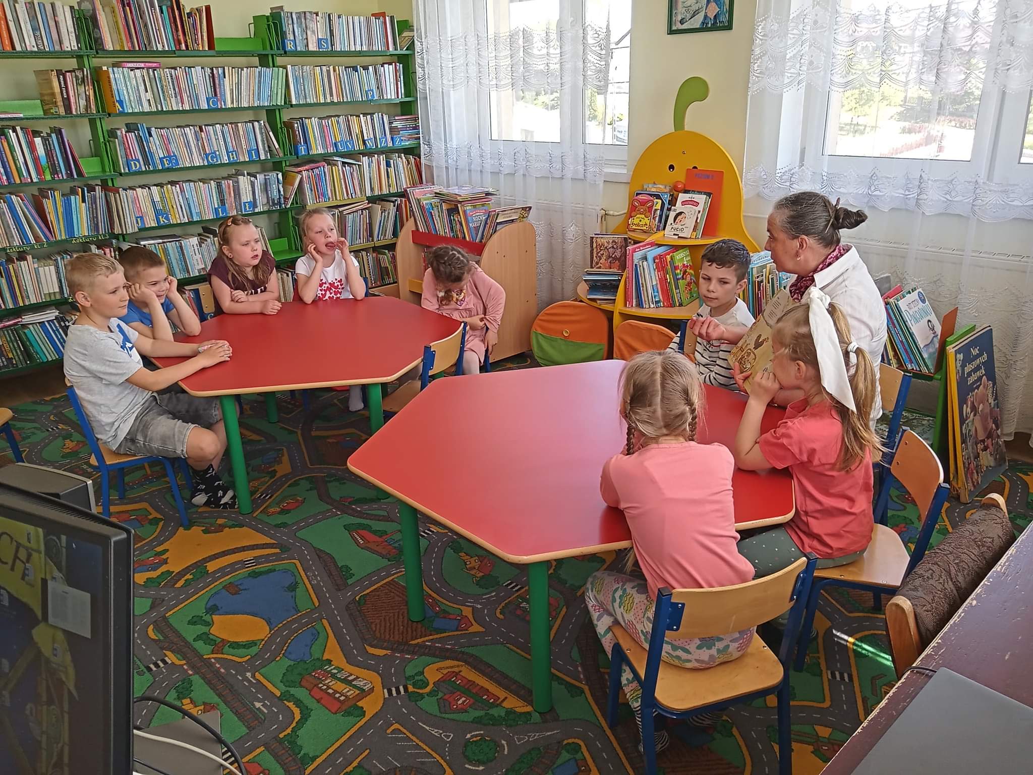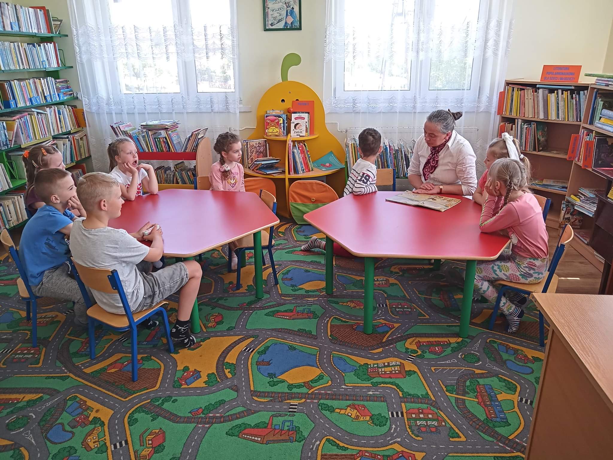 W ramach Ogólnopolskiego Tygodnia Bibliotek, który w tym roku odbywał się pod hasłem "Biblioteka - świat w jednym miejscu", przedszkolaki z grupy "Skrzatów" i "Pszczółek" odwiedziły Filię Biblioteczną w Stojeszynie Pierwszym, aby bliżej poznać twórczość Marii Konopnickiej. Pani bibliotekarka Alfreda Gierłach odczytała dzieciom utwory takie jak: „Parasol”, „Nasza czarna jaskółeczka”, „Pranie”, „Pszczółki”, „Jabłonka”, które uczą szacunku do ludzi, pilności, pracowitości, sumienności, a także wrażliwości na otaczającą nas przyrodę.