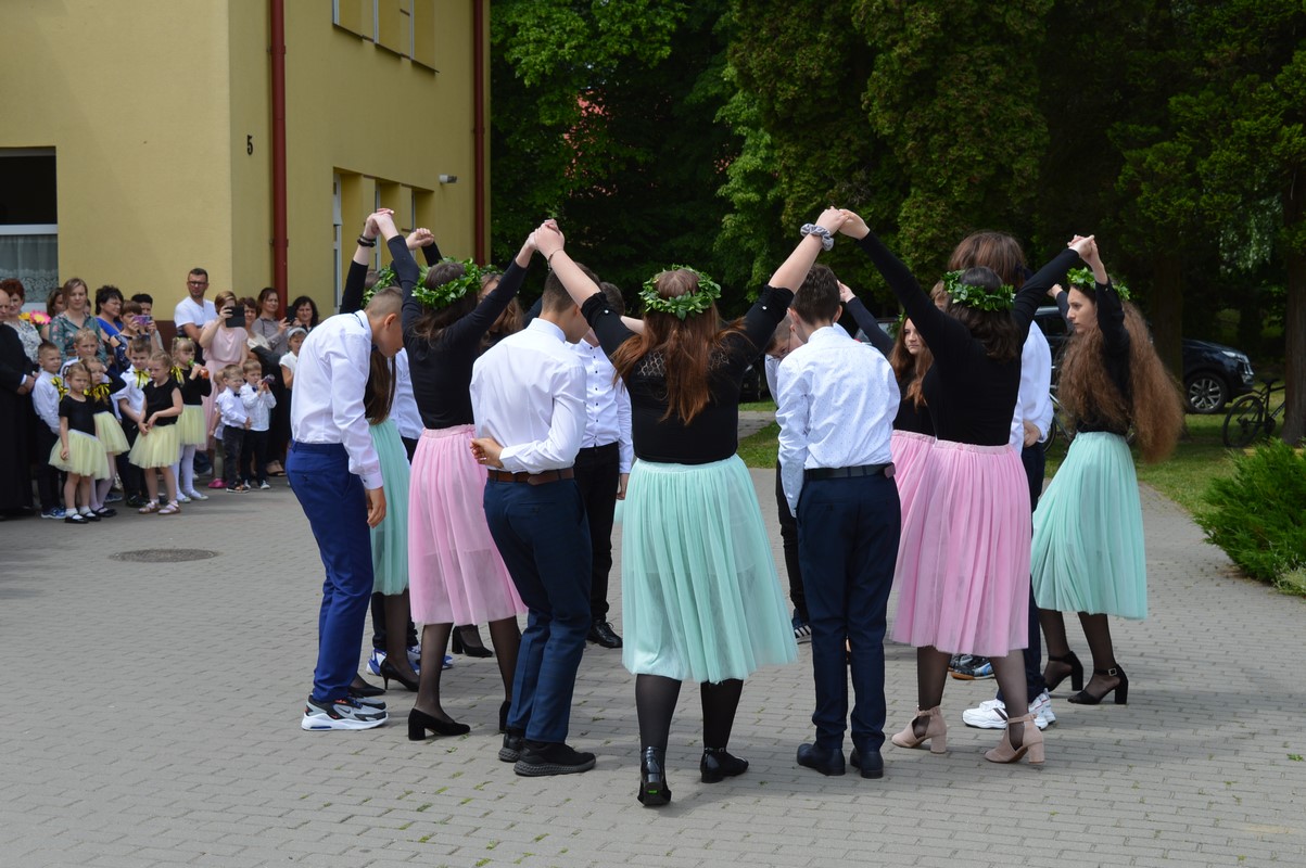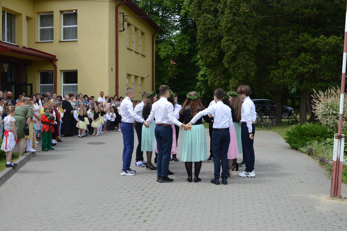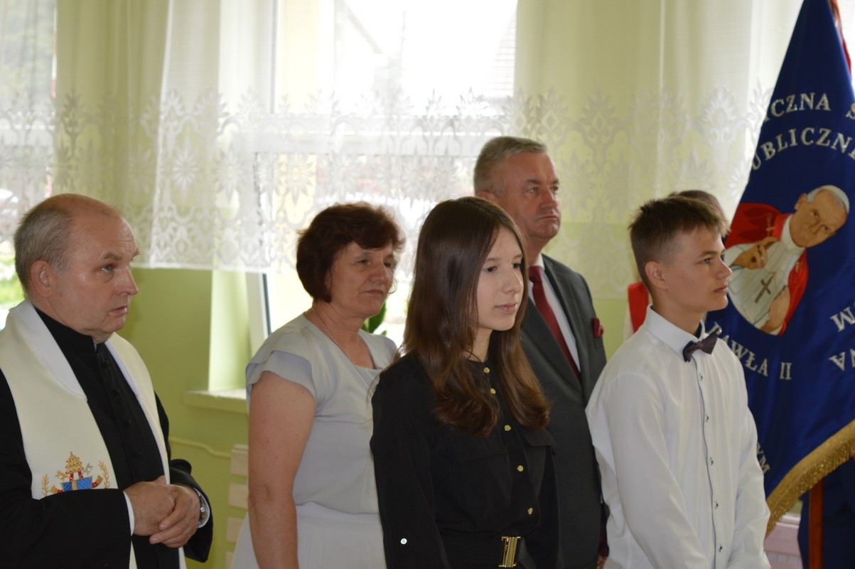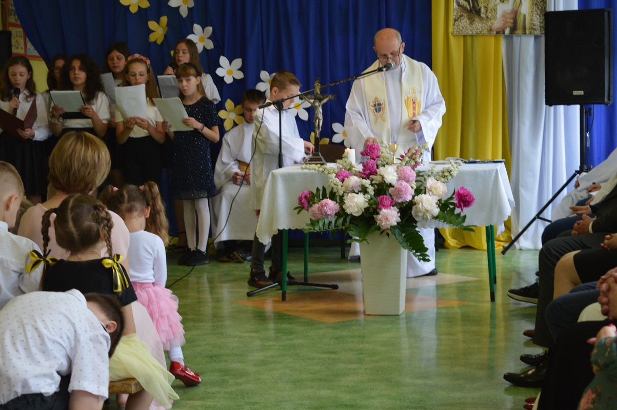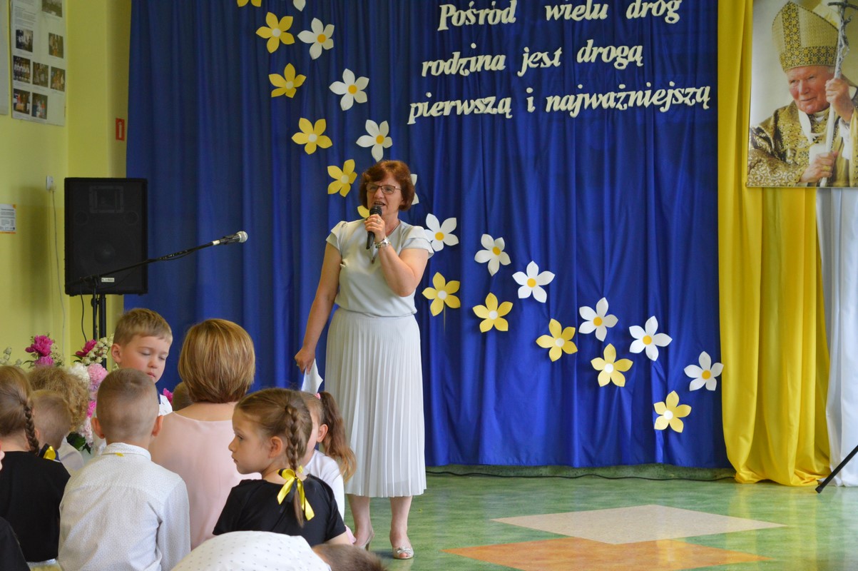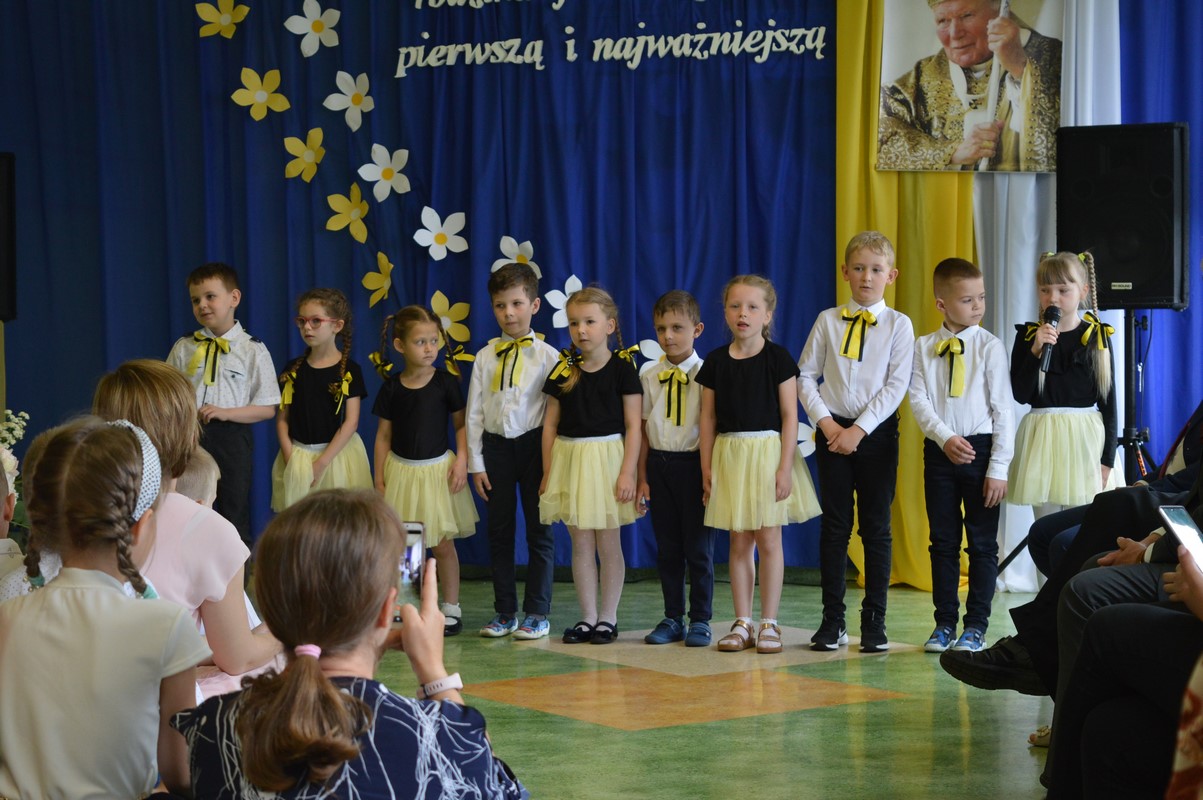 Uroczystą część święta szkoły rozpoczęły występy dzieci z przedszkola, zerówki oraz kl. I – III, które występem, piosenką, tańcem i wierszem podziękowały swoim rodzicom, babciom i dziadkom za miłość, trud i oddanie. Następie miała miejsce uroczysta akademia przygotowana przez uczniów kl. IV – VIII, młodzież przypomniała najważniejsze wydarzenia z życia Papieża Polaka, wplatając w te wspomnienia piękne piosenki i nagrania słów św. Jana Pawła II. Na zakończenie uczniowie najstarszych klas zatańczyli Poloneza.