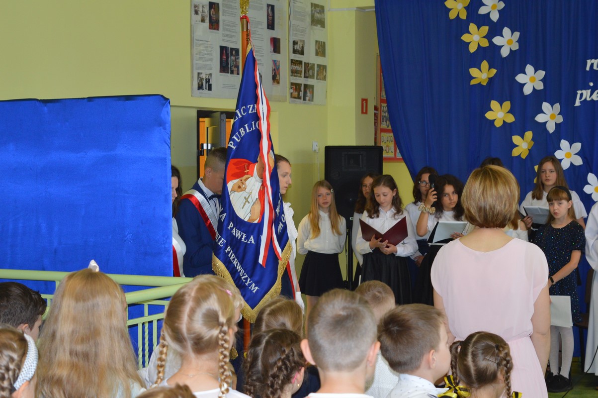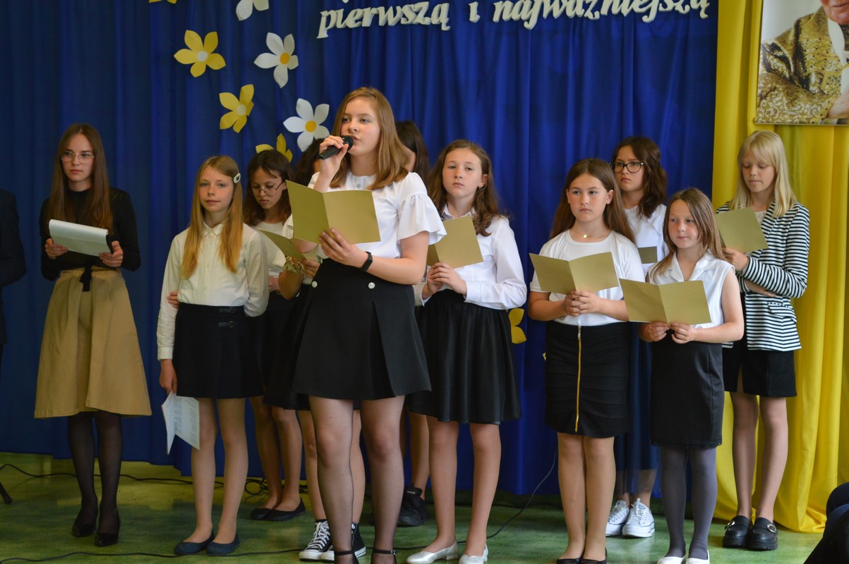 W tym dniu społeczność szkolna dziękowała za miłość i opiekę swoim bliskim oraz w sposób szczególny wspominała Patrona szkoły, Jego życie i pontyfikat w wierszach i piosenkach.