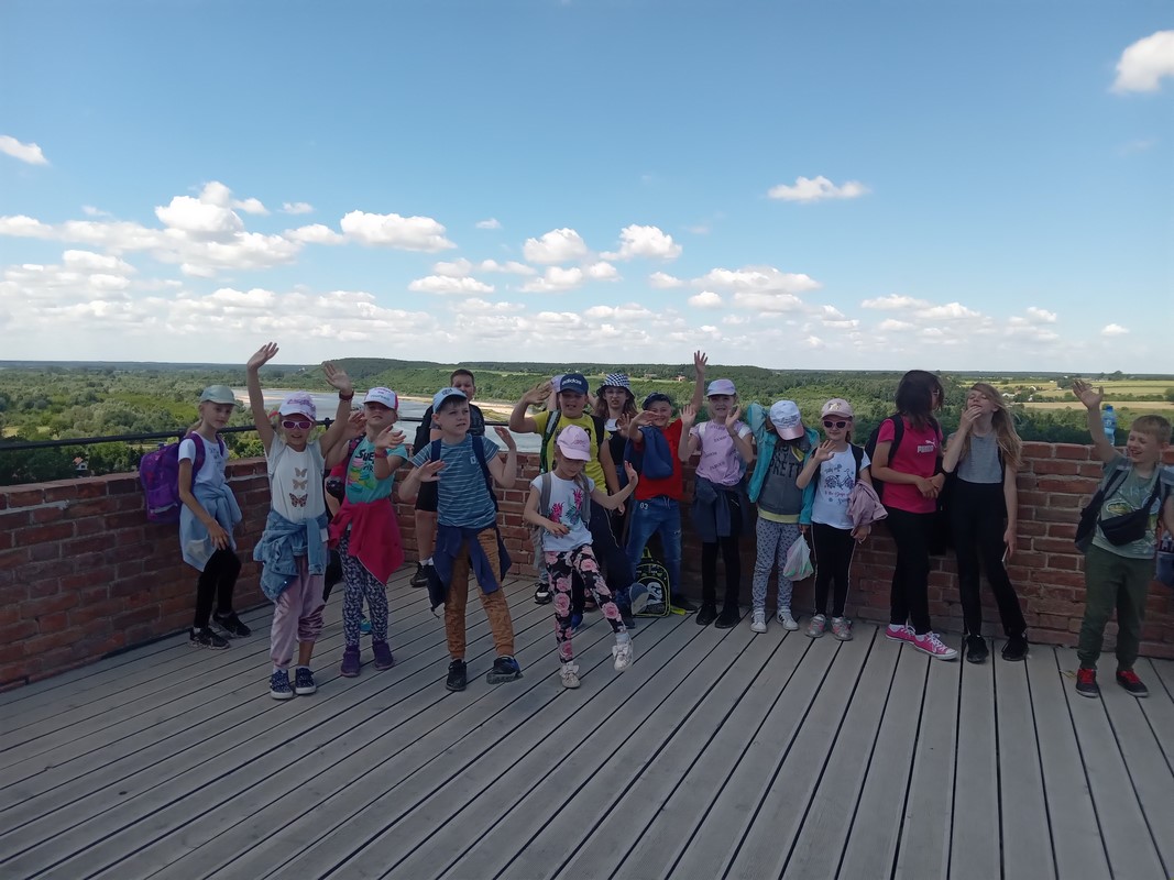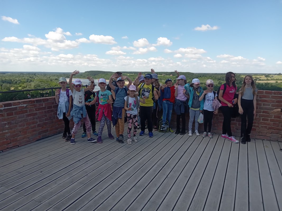 Niewątpliwie największym wyzwaniem dla naszych dzieciaków było zwiedzanie Zespołu Zamkowego wraz z jego dziedzińcem, tarasem widokowym oraz wieżą strażniczą. Po czym już zostało wejście na Górę Trzech Krzyży i wysłuchanie opowieści związanej z tym miejscem. To tutaj podziwialiśmy urokliwą panoramę miasta.