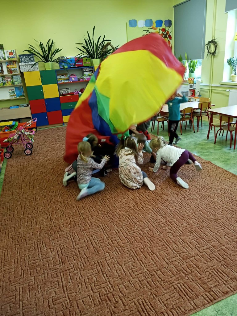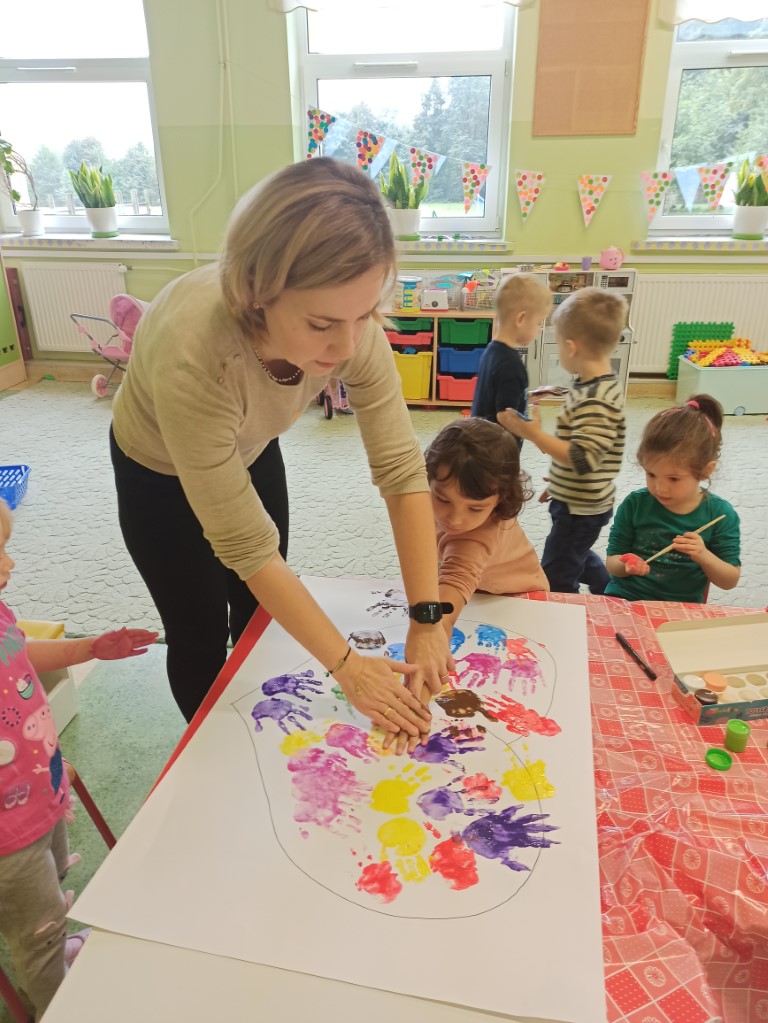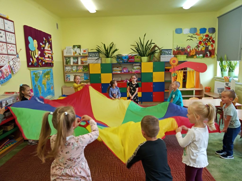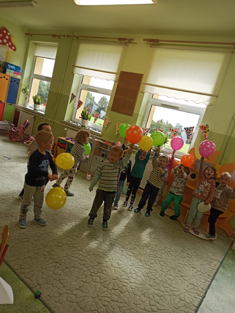 Również w naszym przedszkolu tego dnia było bardzo wesoło. Zajęcia rozpoczęły się od małego quizu dotyczącego przedszkola oraz grupy. Dzieci uczestniczyły również w zabawach ruchowych i muzycznych. Grupa ,,Skrzaty” wspólnie wykonała pracę plastyczną, która świetnie zintegrowała wszystkie dzieci. Dodatkowo każde dziecko otrzymało medal - Super Przedszkolaka. Dzień był również wyjątkowo atrakcyjny dla starszaków. Zabawy muzyczno - ruchowe z chustą animacyjną oraz tańce z balonami to świetna zabawa. Na koniec naszą salę zamieniliśmy w salę kinową, by przy popcornie obejrzeć bajkę. Miłym akcentem tego dnia był słodki poczęstunek, przygotowany przez kochanych rodziców.