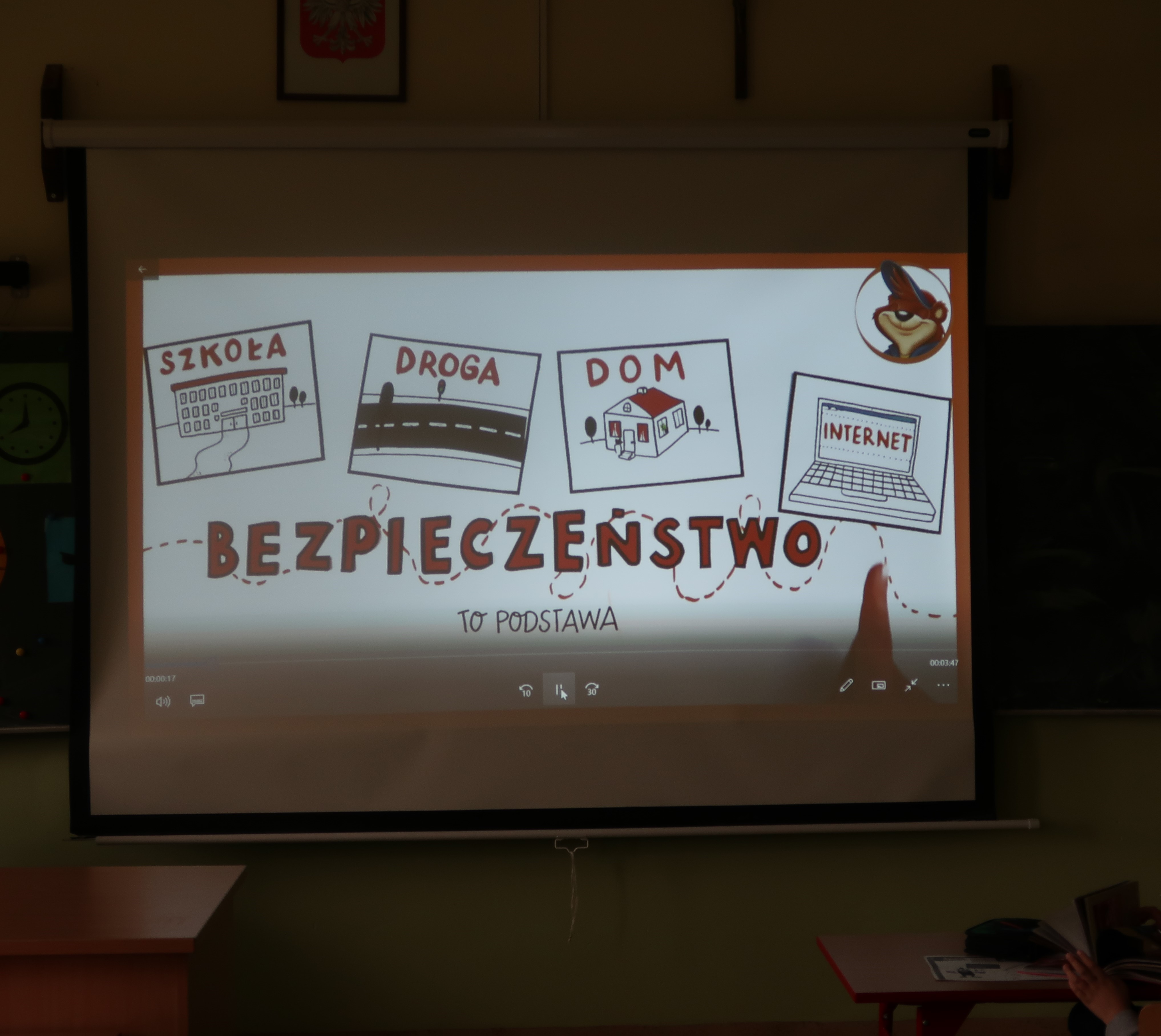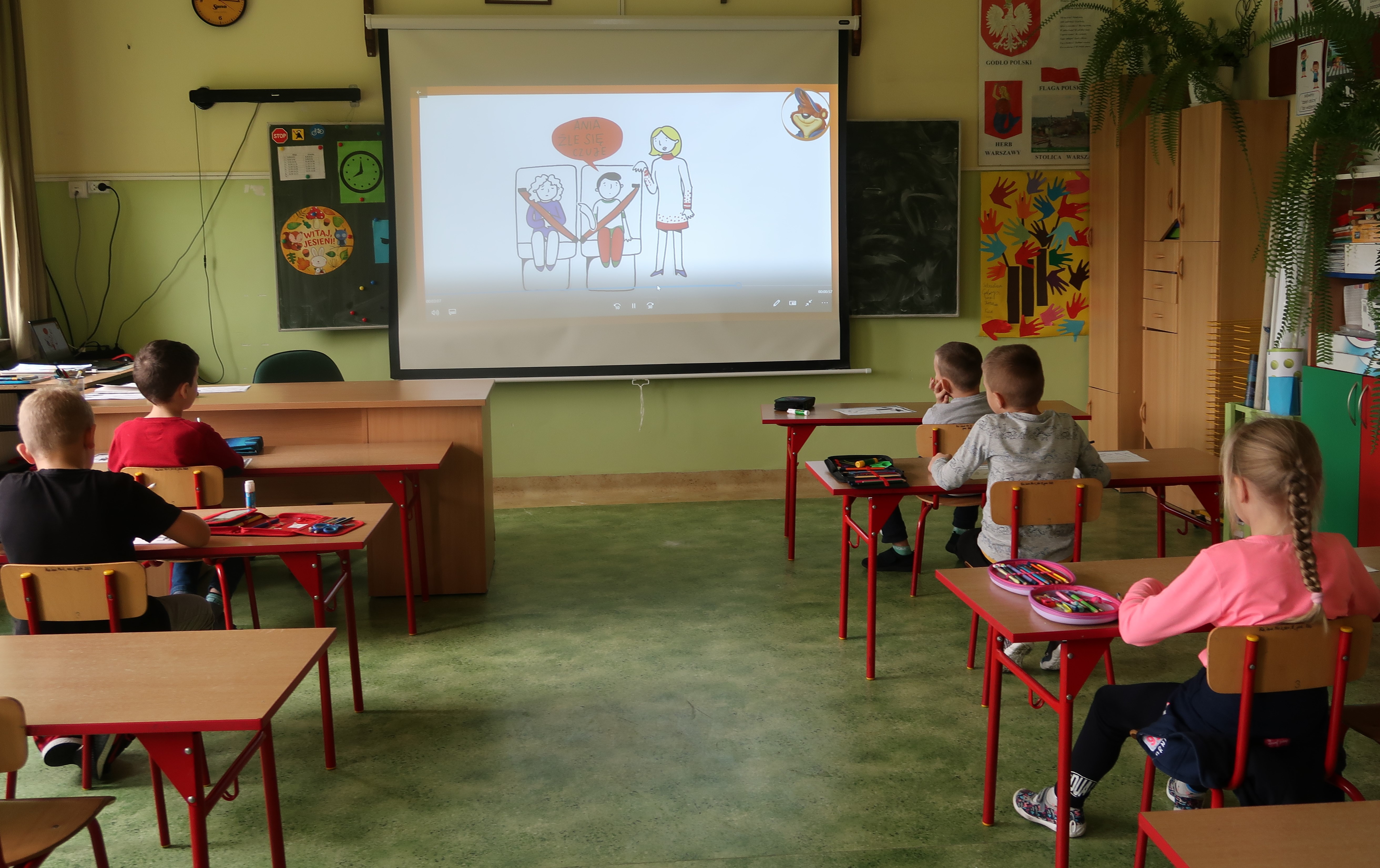 W ramach programu we wrześniu pierwszoklasiści uczestniczyli w zajęciach pt. ,,Jesteśmy bezpieczni w szkole”. Podczas zajęć uczniowie poznali postać Kubusia Puchatka i jego 5 przyjaciół. Dzieci obejrzały film edukacyjny oraz z zaangażowaniem wypełniały karty pracy otrzymane od organizatorów. Uczniowie poznali zasady bezpiecznego zachowania w szkole, na wycieczce oraz w różnych porach roku. Wykonali też rysunki ilustrujące poznane zasady bezpieczeństwa. Kubuś Puchatek przypomniał dzieciom numery alarmowe oraz w jakich sytuacjach należy ich używać. Uczestnictwo w zajęciach wymagało od uczniów aktywności, zaangażowania i wykorzystania zdobytej wiedzy w praktyce.
