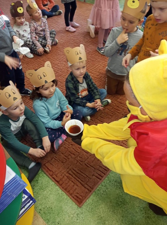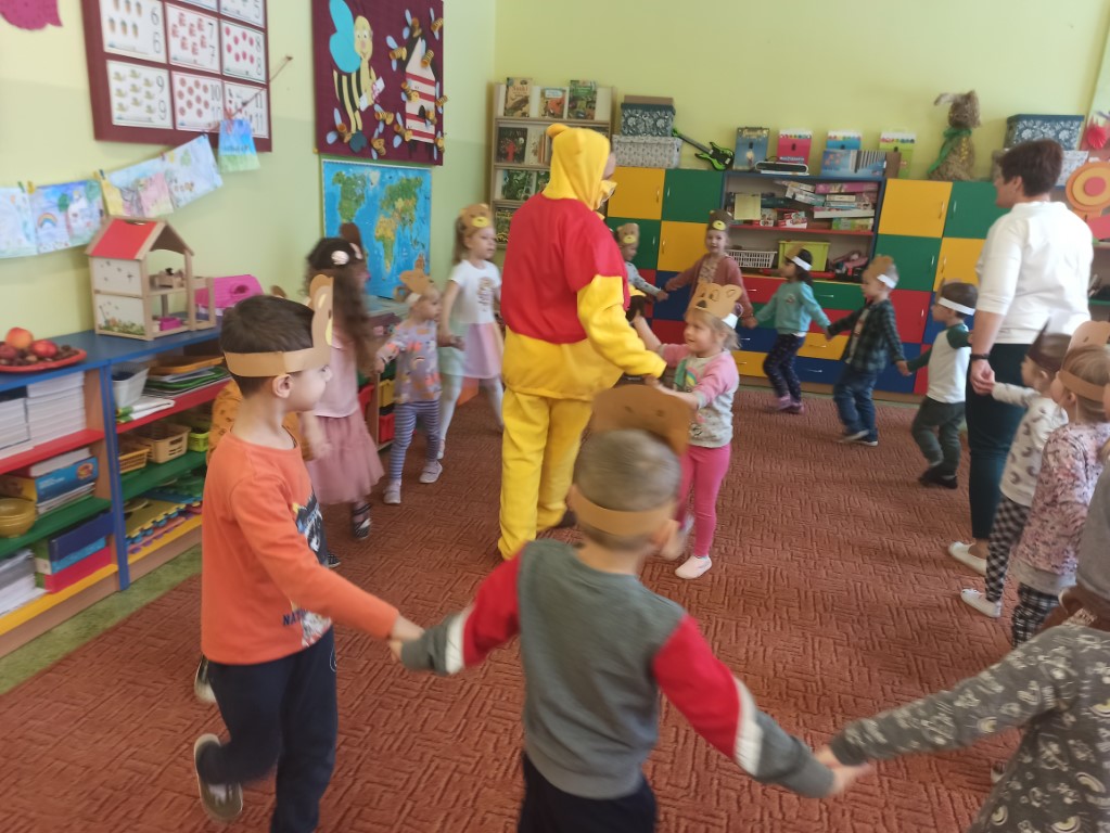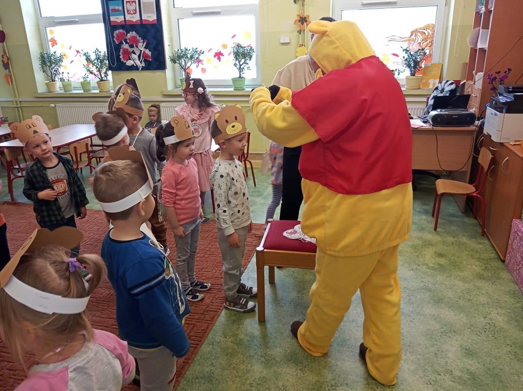 W ciągu dnia prowadzone były różne zajęcia związane z pluszowym misiem, dzieci śpiewały piosenki, poznały historię powstania pluszowego misia, robiły opaski z misiem. Jednak gościem specjalnym w tym dniu był Kubuś Puchatek, który sprawił dzieciom dużo radości. Miś przeczytał przedszkolakom bajkę ,,O misiu łakomczuszku”. Następnie dzieci zaprosiły misia do tańca i wspólnych zabaw. Była również degustacja słodkiego miodku. Każdy przedszkolak otrzymał od Misia medal – Przyjaciela Pluszowego Misia no i pamiątkowe zdjęcie. Święto Pluszowego Misia na stałe wpisało się do kalendarza najważniejszych uroczystości przedszkolnych. Na koniec dnia powstały bardzo ciekawe prace plastyczne w obu grupach przedszkolnych gdzie tematem był oczywiście miś.