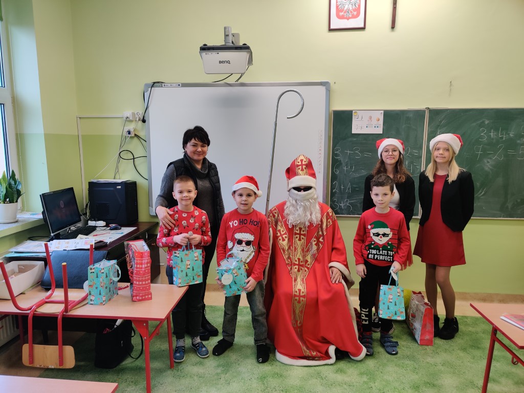 Podczas swojej wizyty Mikołaj rozmawiał z naszymi uczniami. Dzieci obiecały, że postarają się zachowywać grzecznie w szkole i w domu. Mikołaj obdarował dzieci i wychowawców prezentami. Po wykonaniu wspólnego zdjęcia dzieci z uśmiechem na twarzy pożegnały Mikołaja.