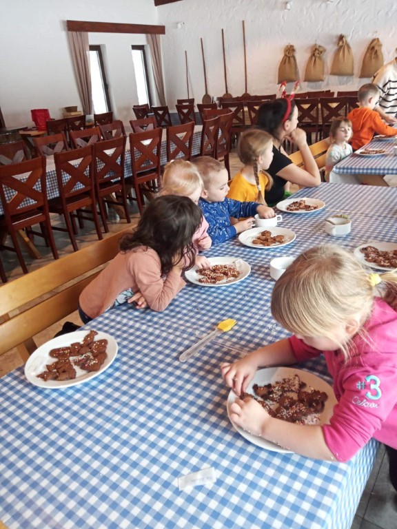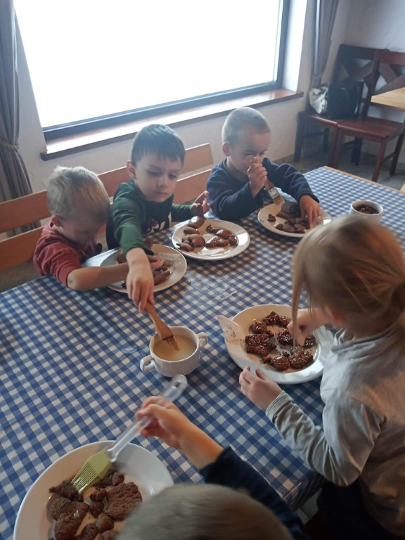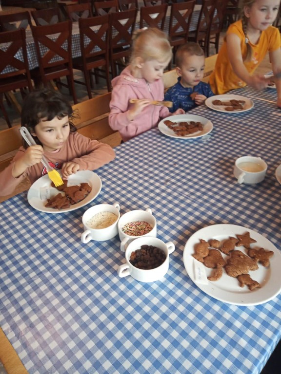 W czasie zajęć kulinarnych dzieci mogły same przygotować pierniczki, które po upieczeniu udekorowały słodkim lukrem i kolorową posypką. Gotowe wypieki będą doskonale smakować w czasie Świąt, mogą być również słodkim podarunkiem dla bliskiej osoby.