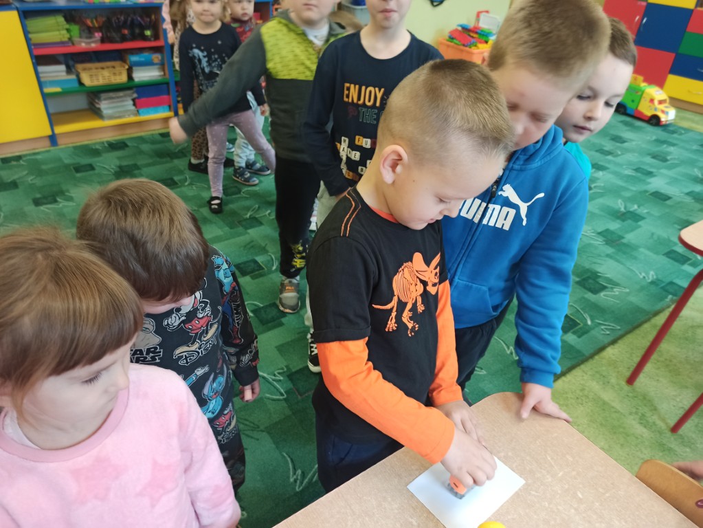 Pan listonosz przyszedł do przedszkola z torbą pełną niespodzianek. Dzieci z wielkim zainteresowaniem słuchały opowieści o jego codziennej pracy. Nasz gość pokazał im różne rodzaje listów i przesyłek, a także znaczek pocztowy, stempel i kopertę. Przedszkolaki dowiedziały się, jak prawidłowo zaadresować list oraz gdzie należy przykleić znaczek.