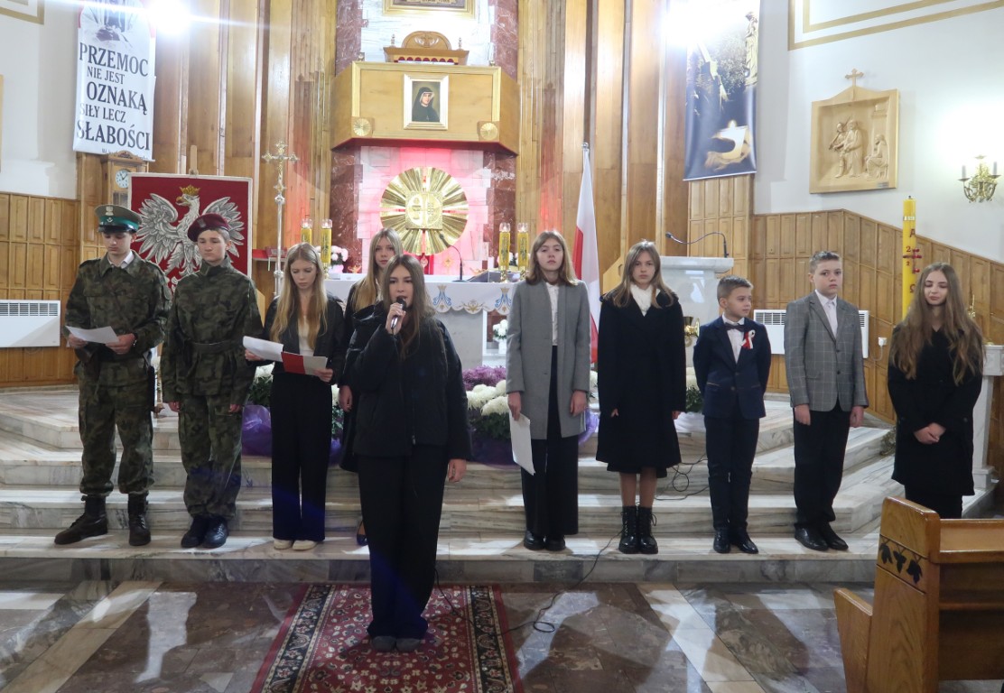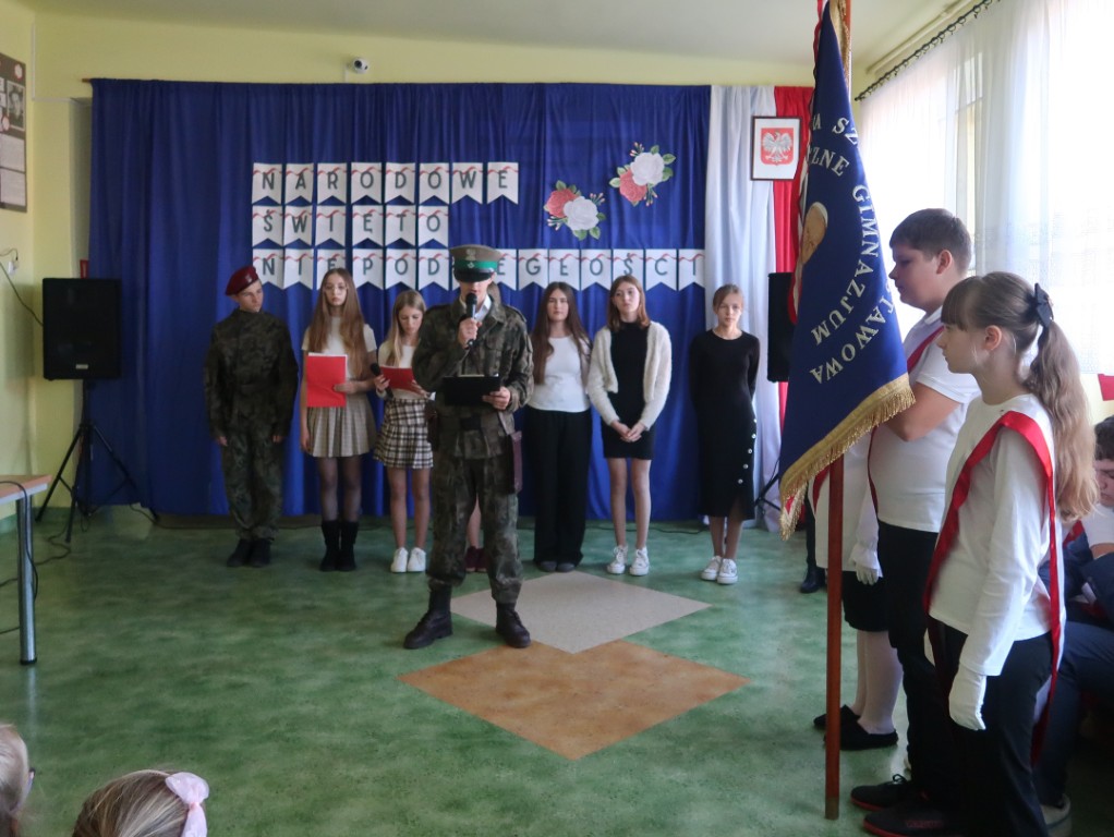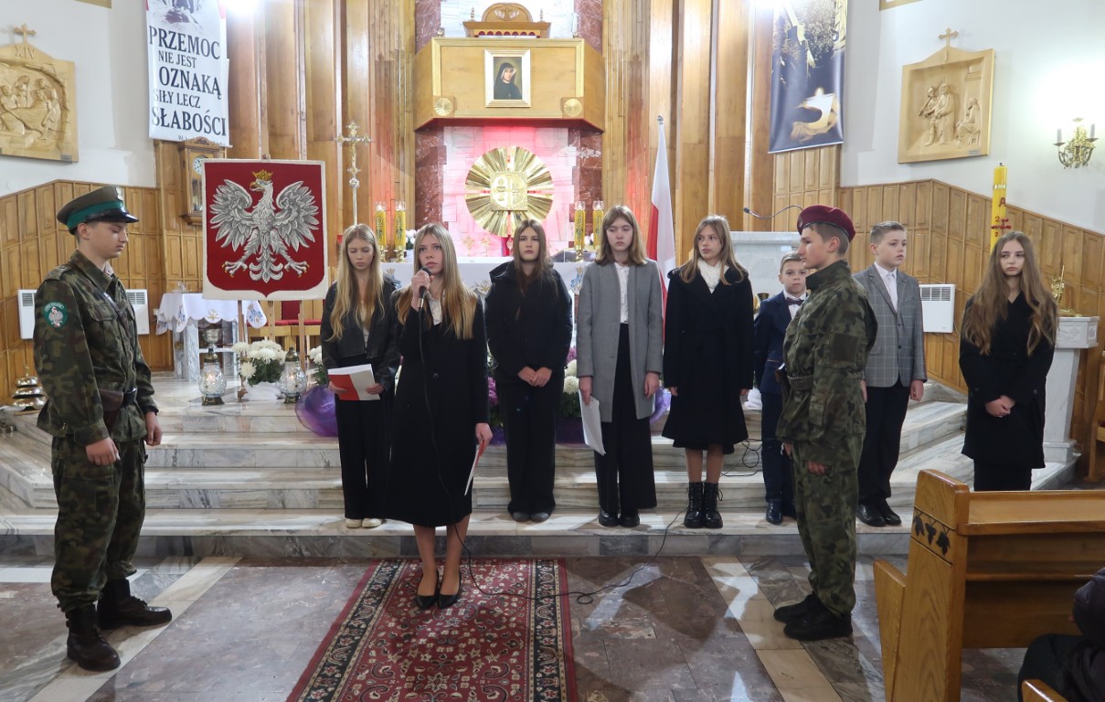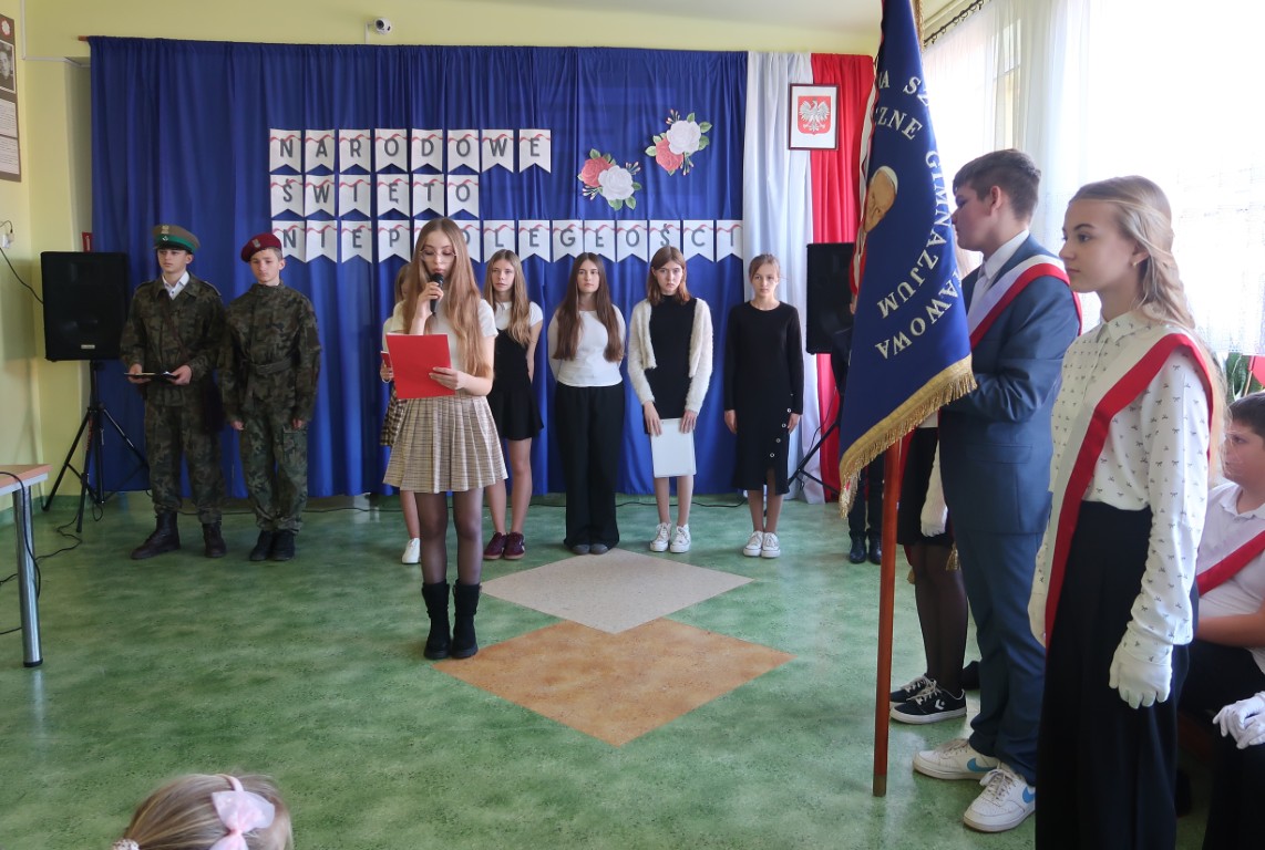 W 2025 roku obchodziliśmy 107 rocznicę odzyskania niepodległości przez Polskę. To najważniejsze ze świąt narodowych jest obchodzone od lat; toteż każdego roku, z tej okazji, młodzież szkolna przygotowuje apele, doniosłe uroczystości okolicznościowe. Może się wydawać, że scenariusze tych imprez muszą się powtarzać bo w końcu cóż nowego można jeszcze dodać. Nie jest to prawdą bowiem w roku obecnym scenariusz apelu z okazji dnia niepodległości, w wykonaniu młodzieży Publicznej Szkoły Podstawowej imieniem Jana Pawła II w Stojeszynie Pierwszym, był inny. Przede wszystkim wykorzystano w nim talenty wokalne oraz recytatorskie uczniów w powiązaniu z umiejętnościami i doświadczeniem prowadzących apel nauczycieli. Młodzi artyści, ostatnie trzysta lat historii Polski przedstawili w formie muzycznej oraz recytatorskiej. W repertuarze dobrano szereg bardziej lub mniej znanych piosenek okolicznościowych, w których opowiadano o patriotycznych wartościach, dumie bycia Polakiem, cenie jaką przyszło zapłacić narodowi za odzyskanie niepodległego państwa. Naturalnie całość repertuaru spajały wiersze deklamowane przez uczniów z klas od IV do VIII a także sceny rodzajowe w wykonaniu realistycznie i fachowo umundurowanych aktorów z klasy siódmej. Po przedstawieniu grupa nauczycieli i młodzieży zapaliła znicze przy tablicy upamiętniającej nauczycieli zamordowanych w czasie II wojny światowej.